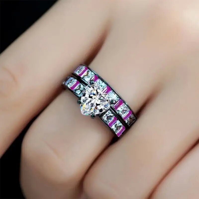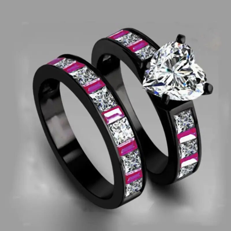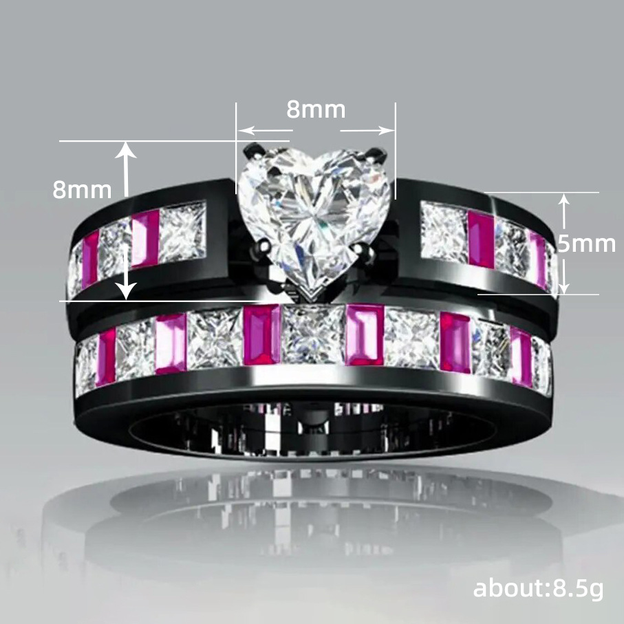 European and American couple rings love zircon classic contrast color set ring e-commerce hot selling simple ring