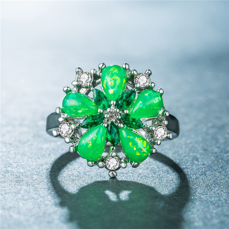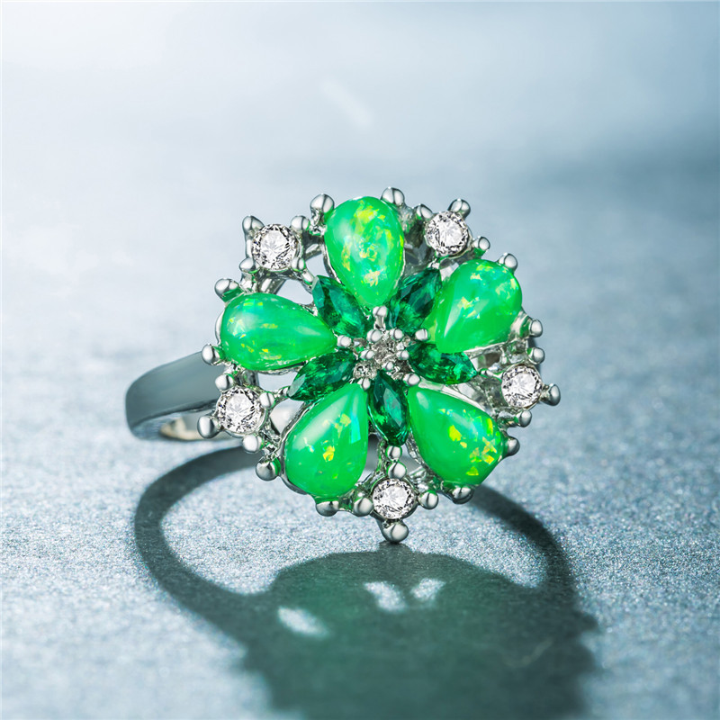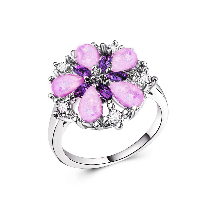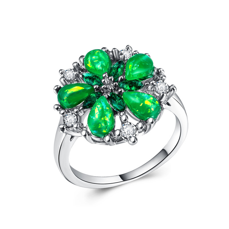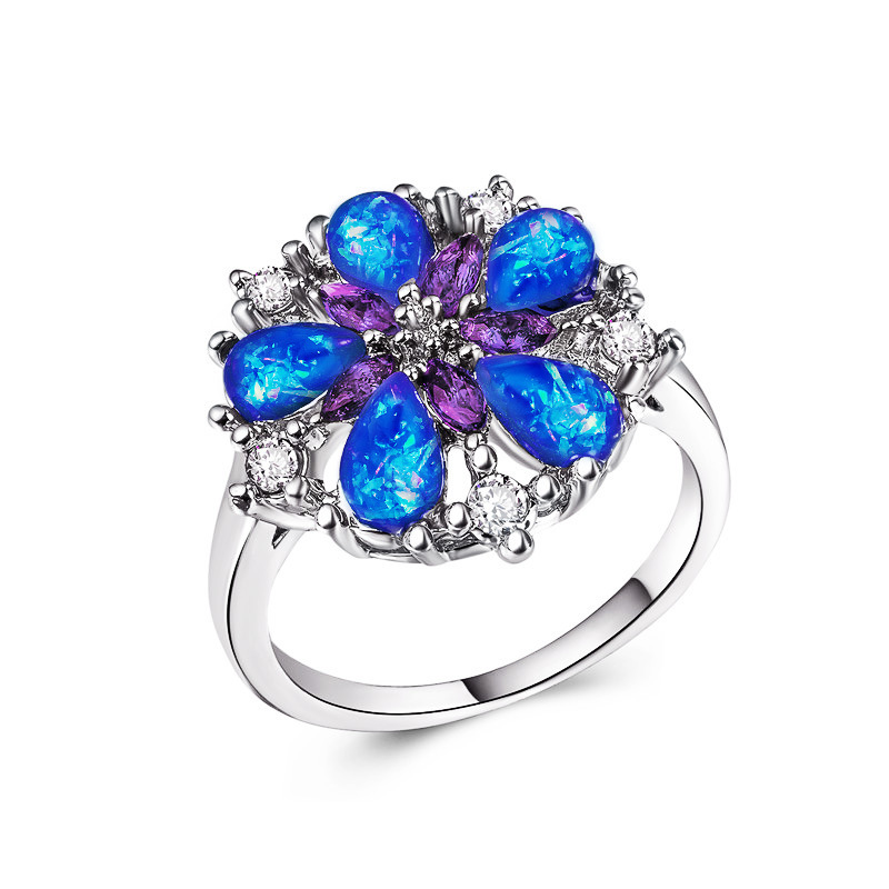 European and American creative accessories exquisite five-petal flower artificial opal opal ring opal women's ring
