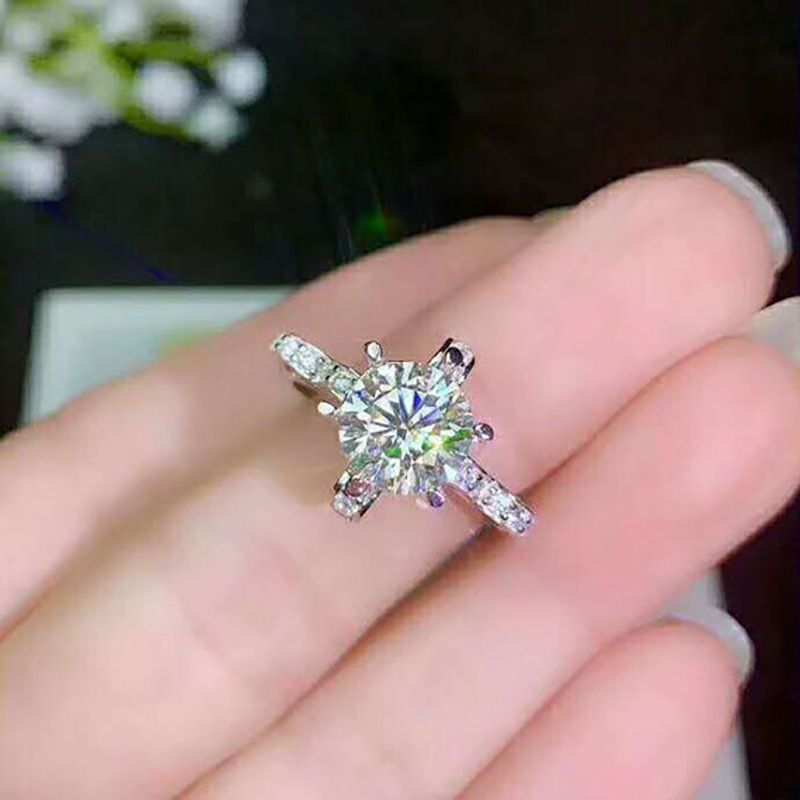 Micro-inlaid celebrity style classic all-match popular ring six-claw zircon wedding ring European and American style light luxury ring