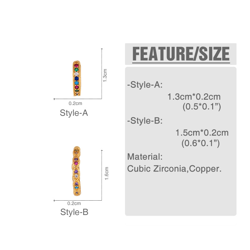 European and American simple fashion color zircon earrings niche design ear clip 18k gold plated earrings eru52