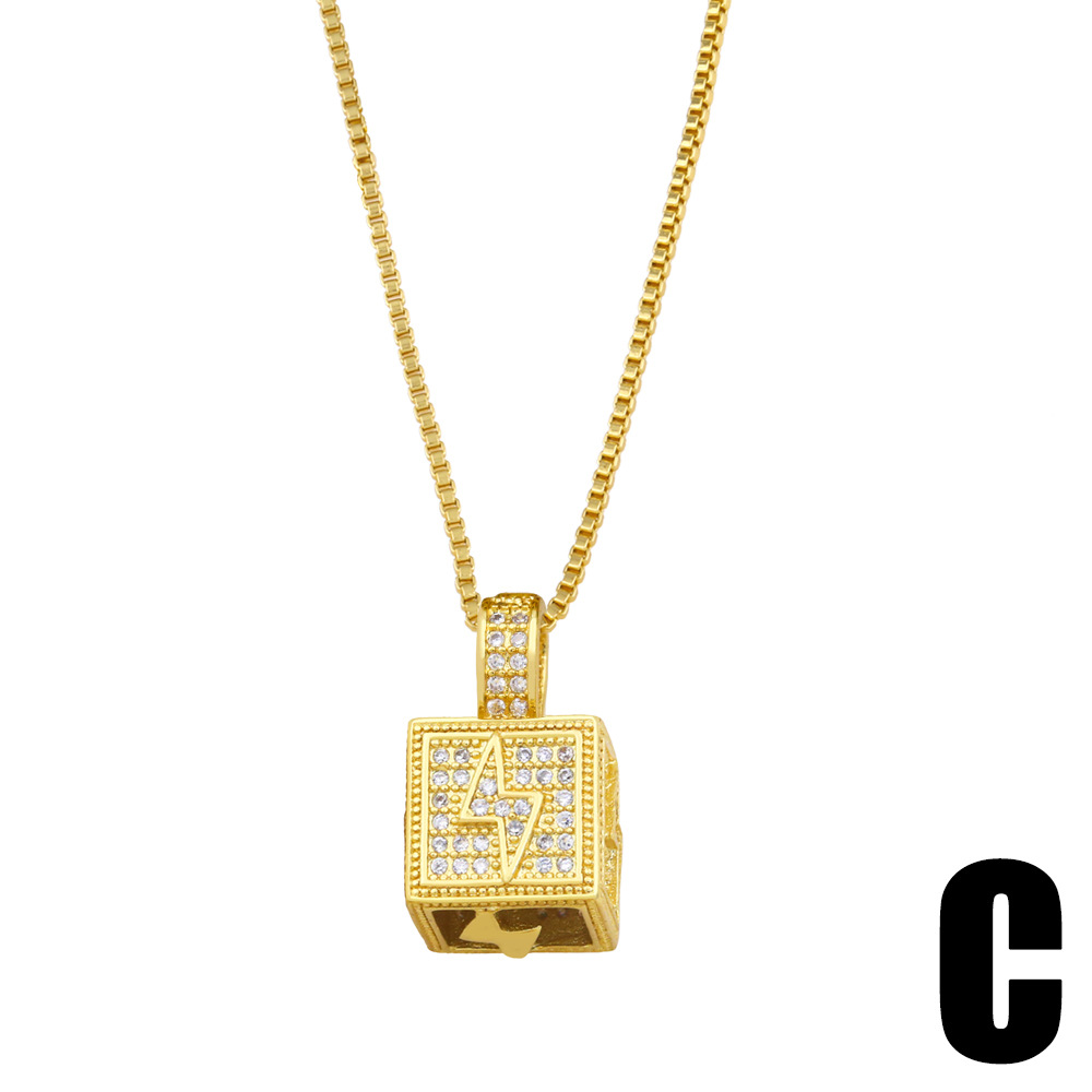 European and American creative geometric square pendant personality hip-hop lightning moon star necklace trendy jewelry nkz50