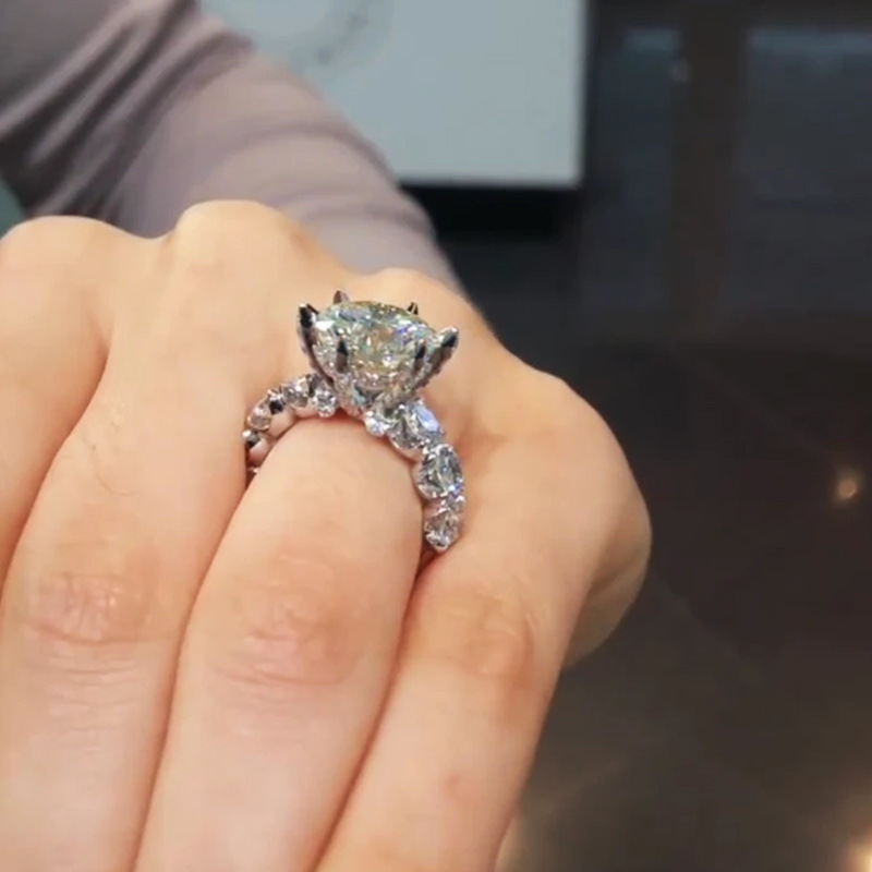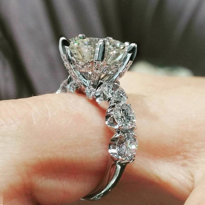 Micro-inlaid celebrity style classic all-match popular ring six-claw zircon wedding ring European and American style light luxury ring