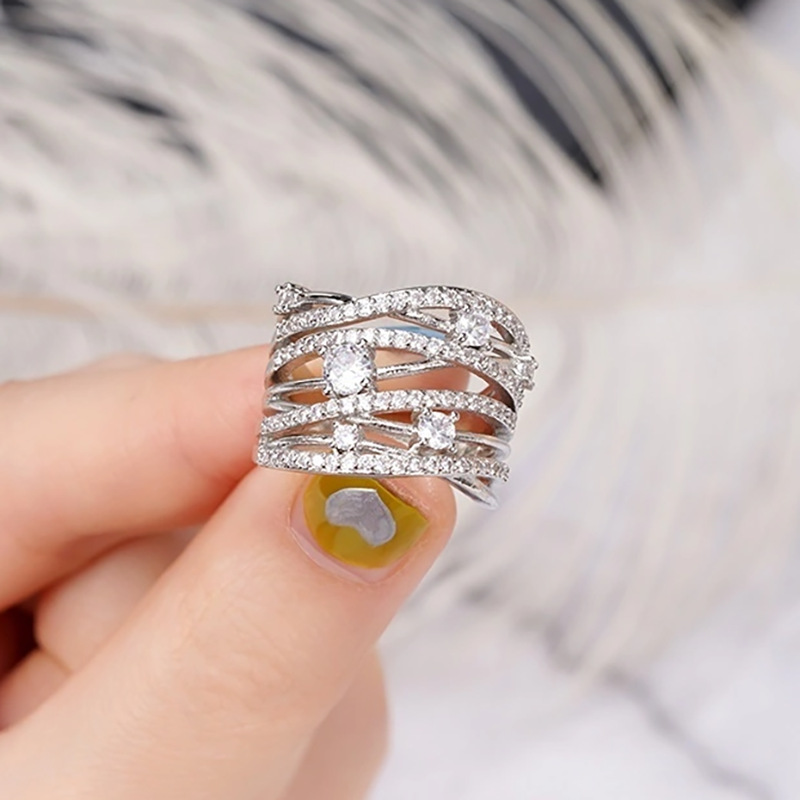 European and American luxury design ring fashionable temperament horse eye zircon ring multi-layer hollow design index finger ring