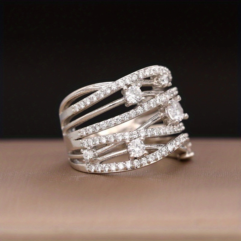Micro-inlaid celebrity style classic all-match popular ring six-claw zircon wedding ring European and American style light luxury ring