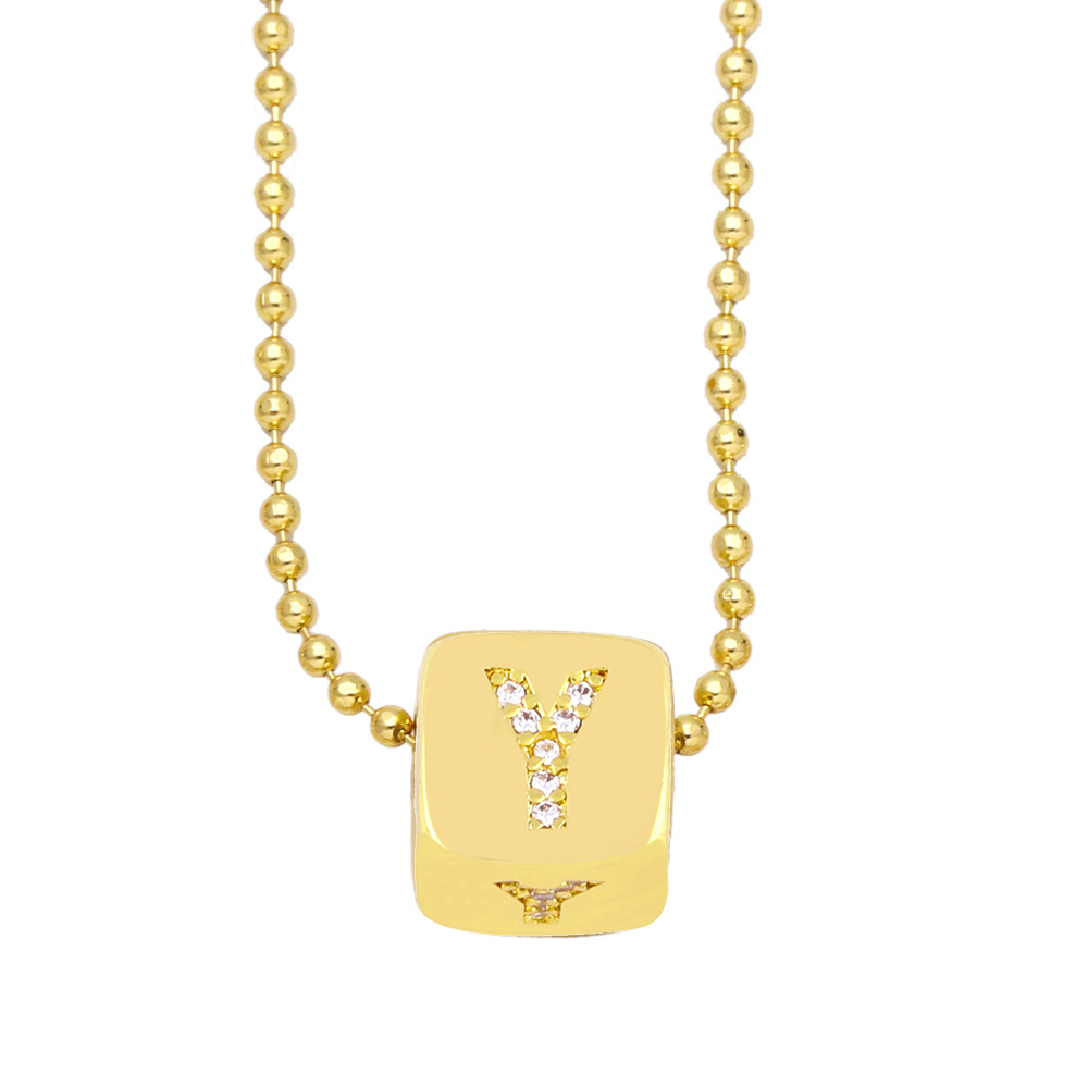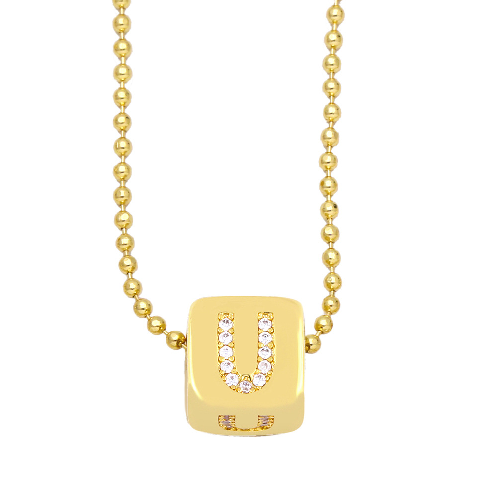 AS jewelry 26 English letters necklace female copper plated real gold inlaid zircon clavicle chain nky42