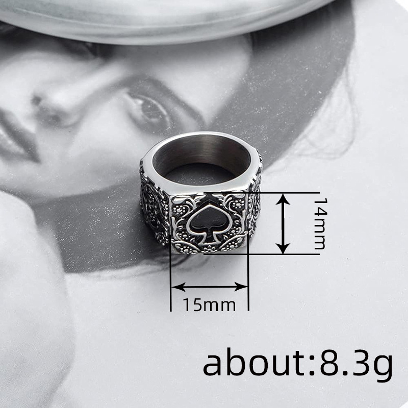 European and American creative shape ring hip hop domineering spade heart unisex ring poker retro ring