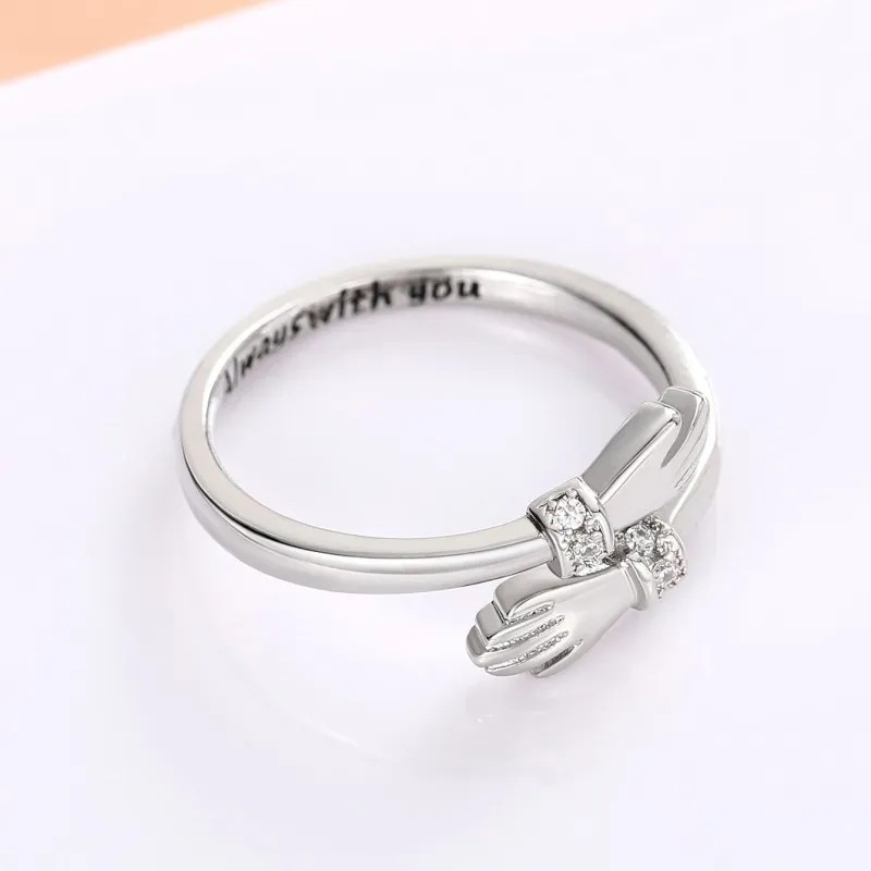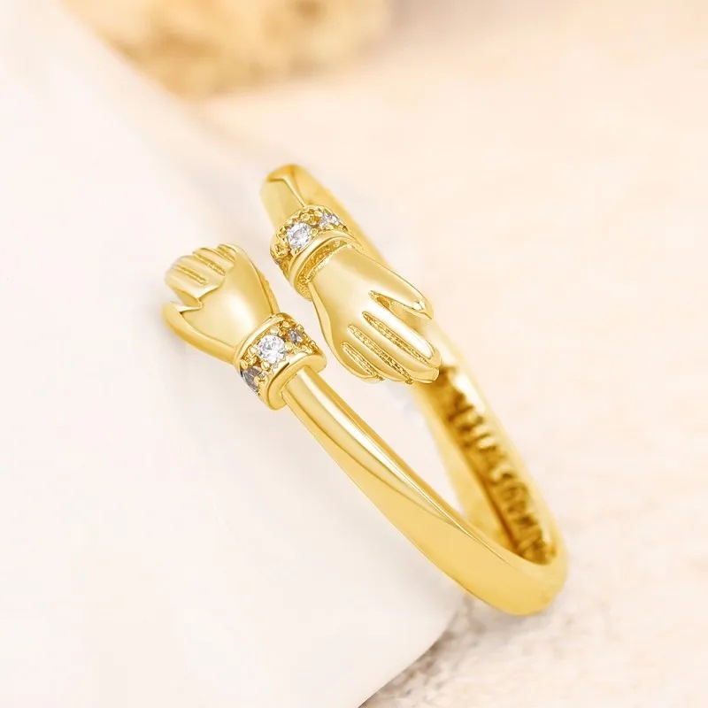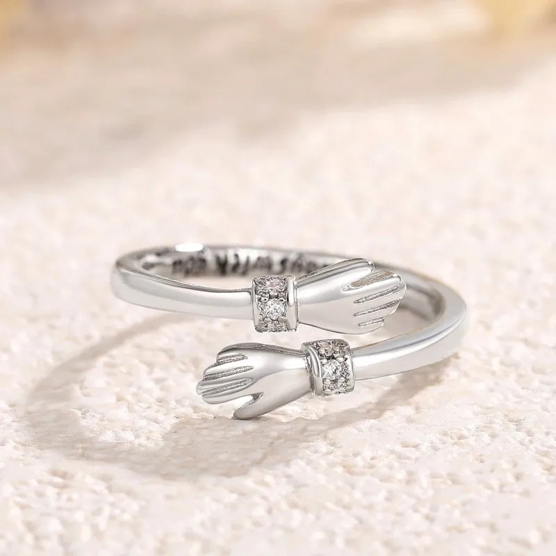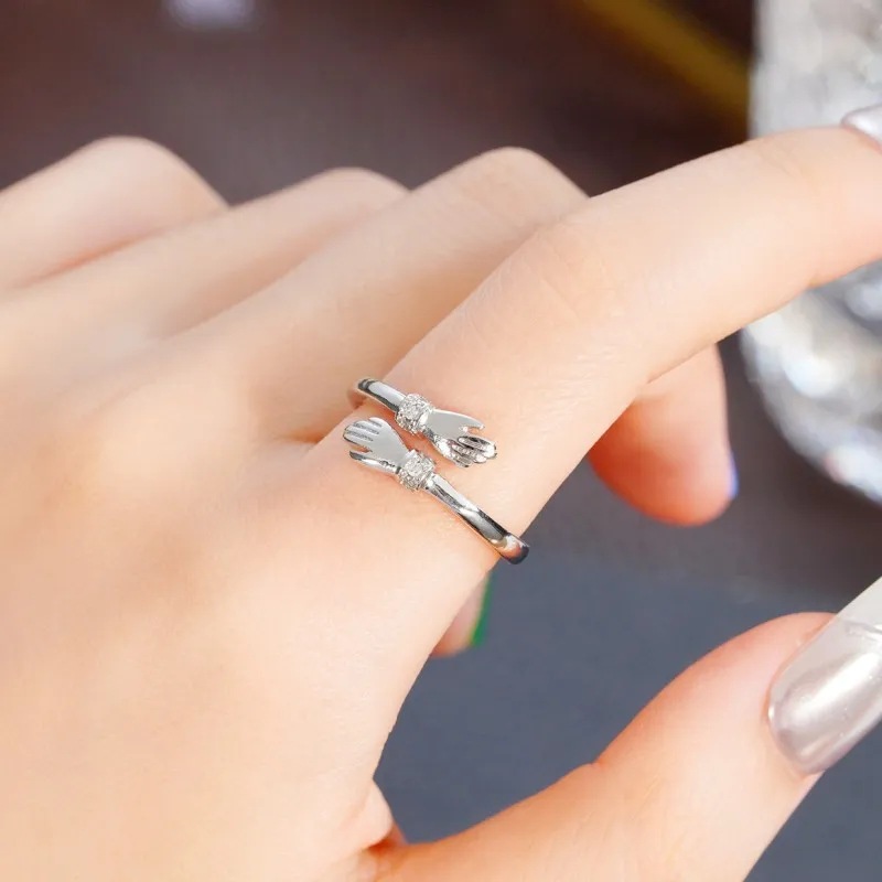 European and American creative two-hand hug ring female love hug opening adjustable ring anniversary gift