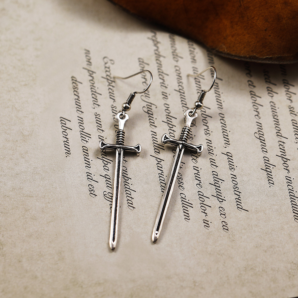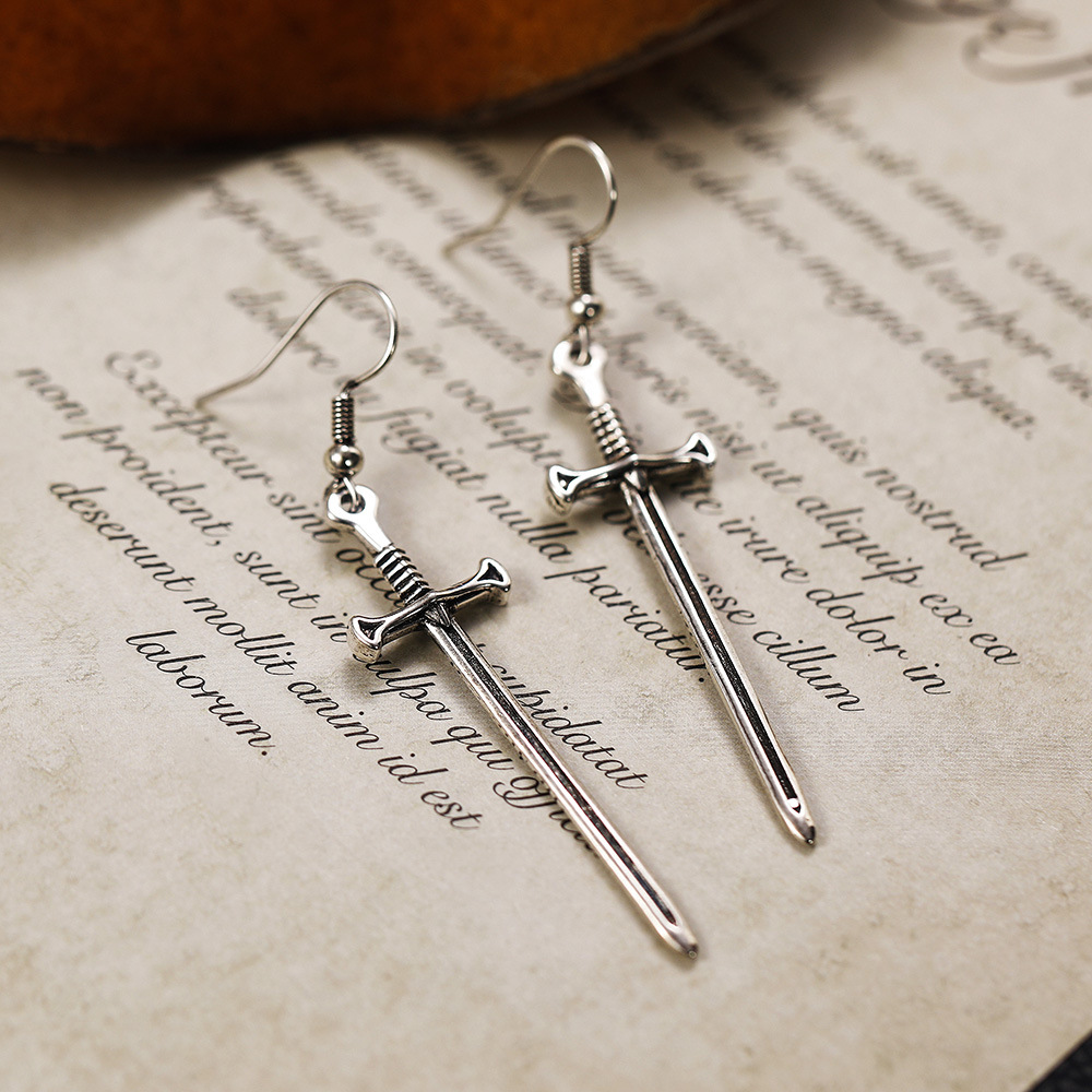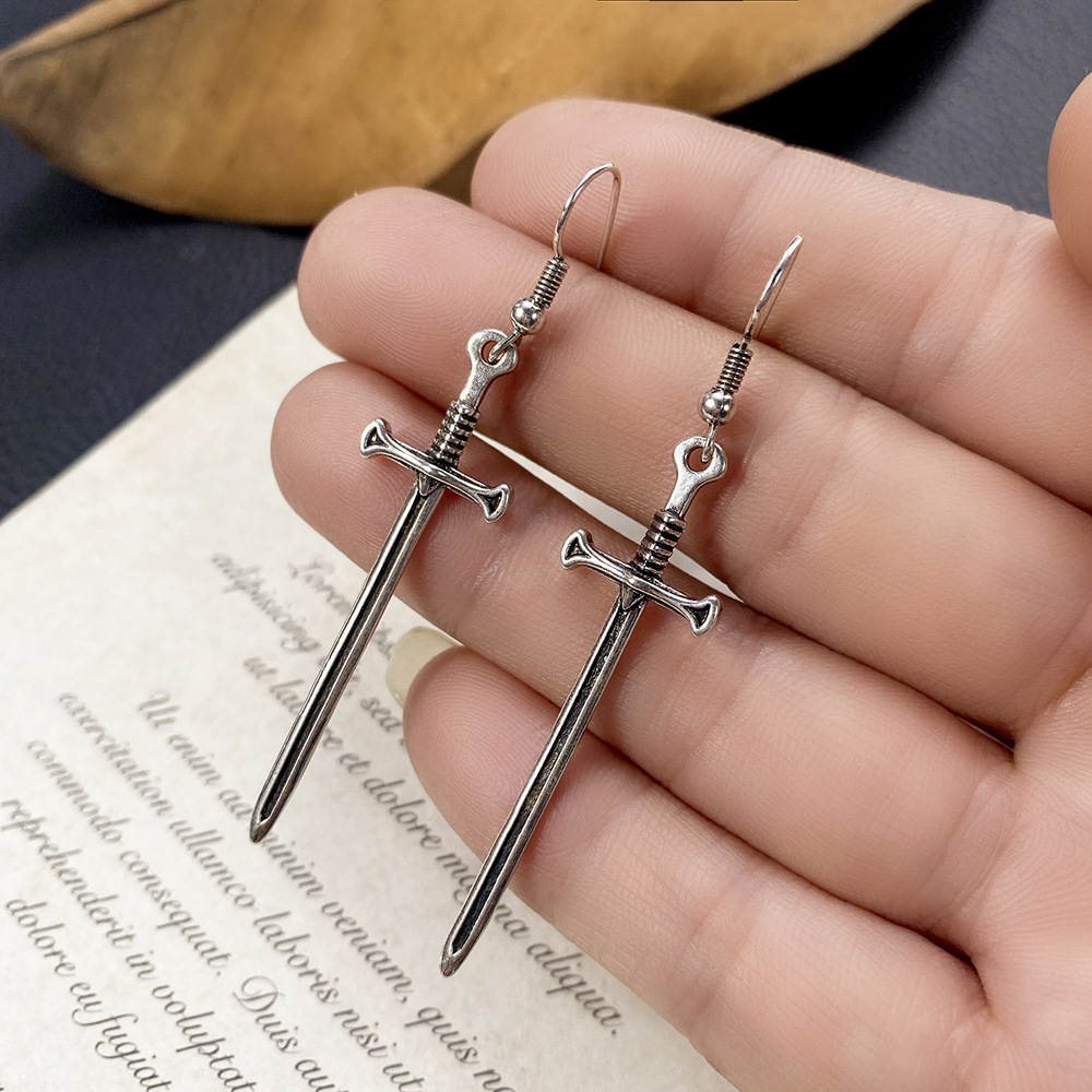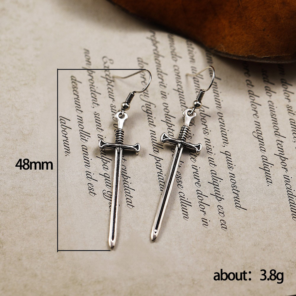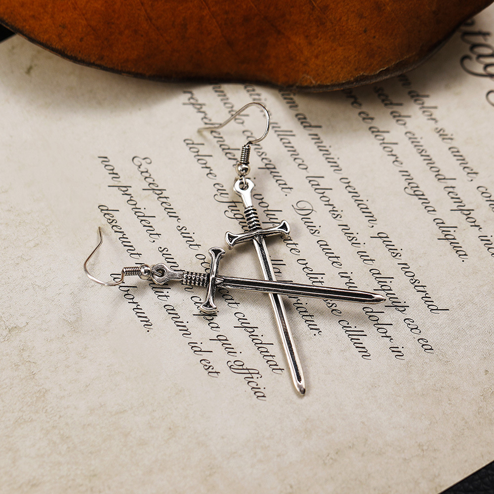 European and American dark punk metal cross sword earrings retro personality dagger earrings unisex earrings