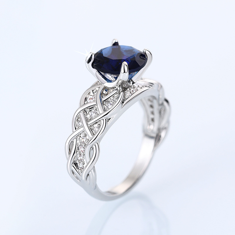 European and American design new ring for women with winding lines and sapphire jewelry, French temperament jewelry
