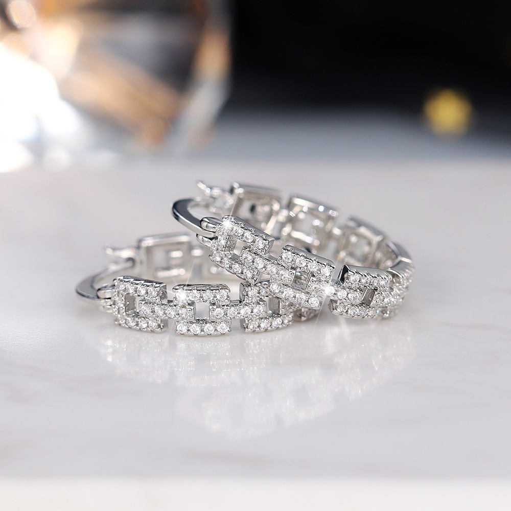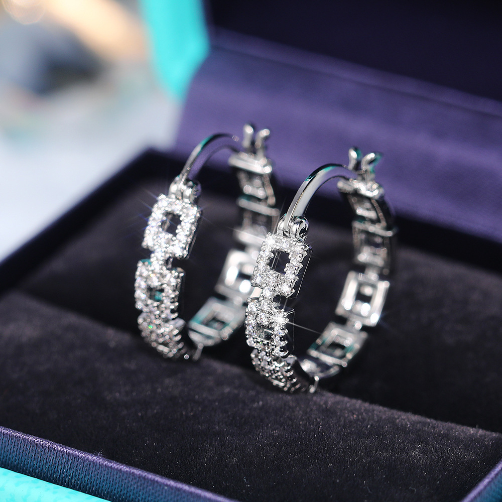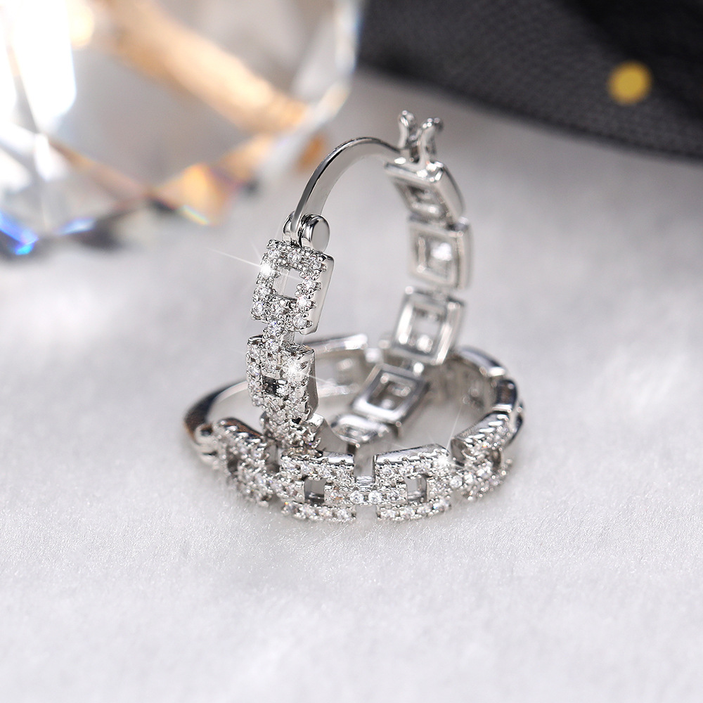European and American design zircon earrings simple high-end ring chain earrings for women