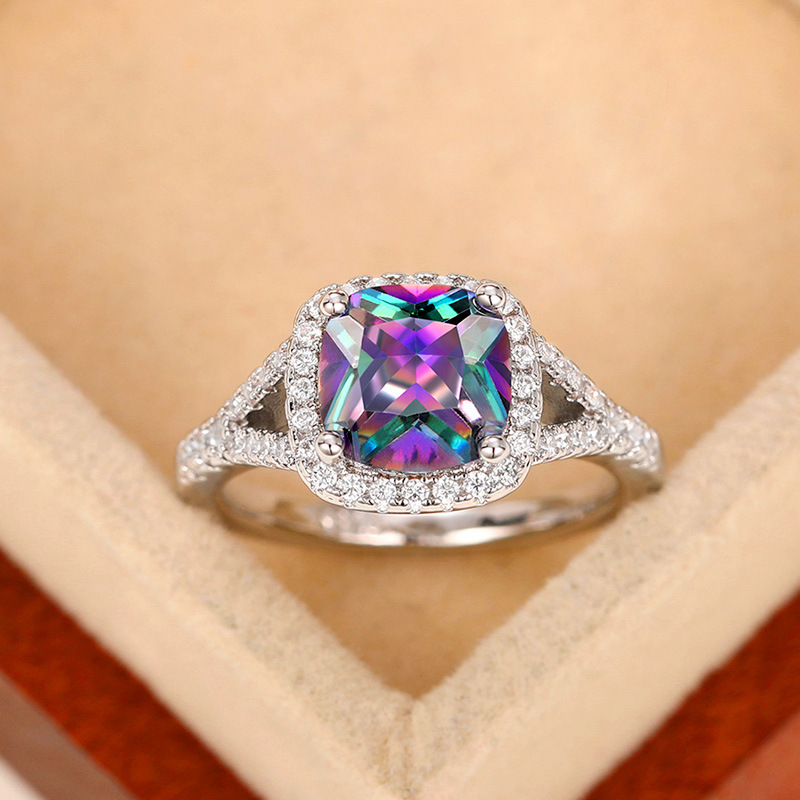 European and American e-commerce hot-selling fashion luxury atmospheric temperament ring simple square color ring for women