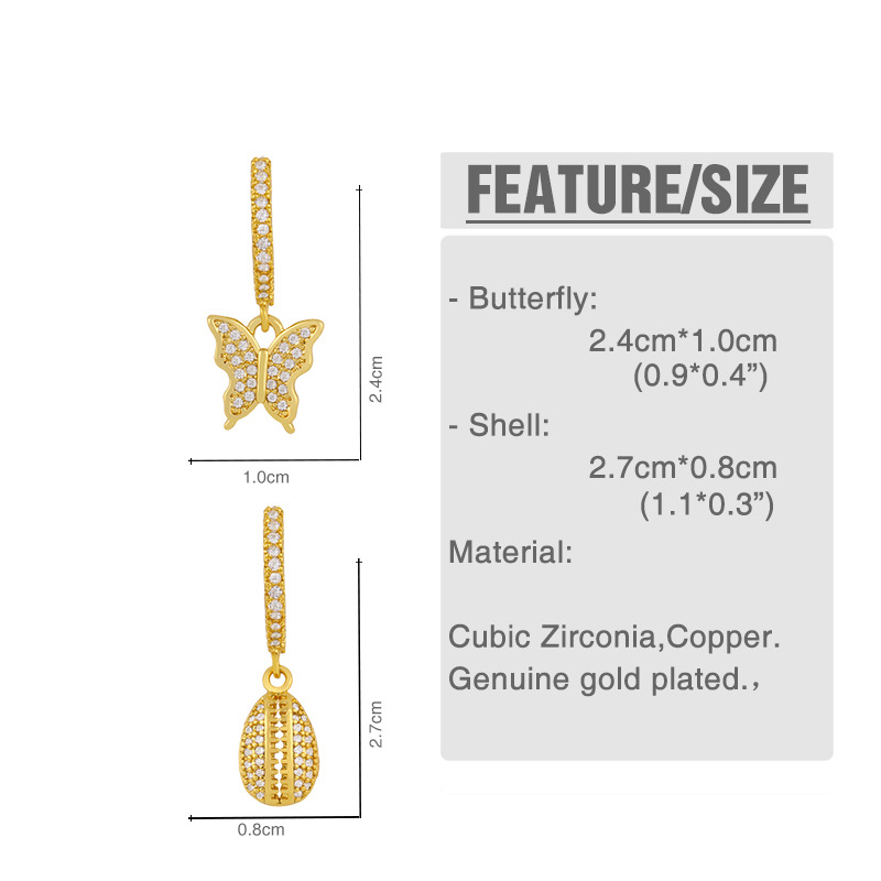 European and American earrings fashion new simple personality creative butterfly earrings shell earrings female diamond earrings eru64