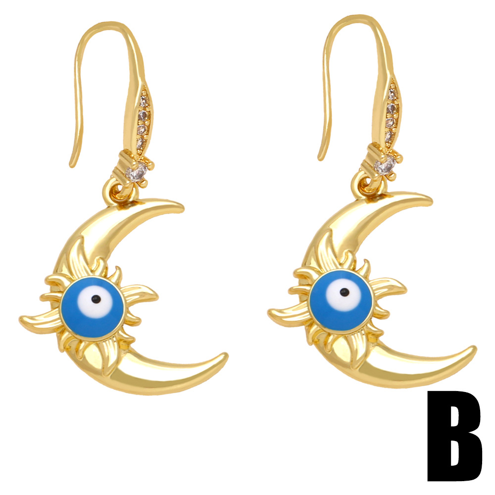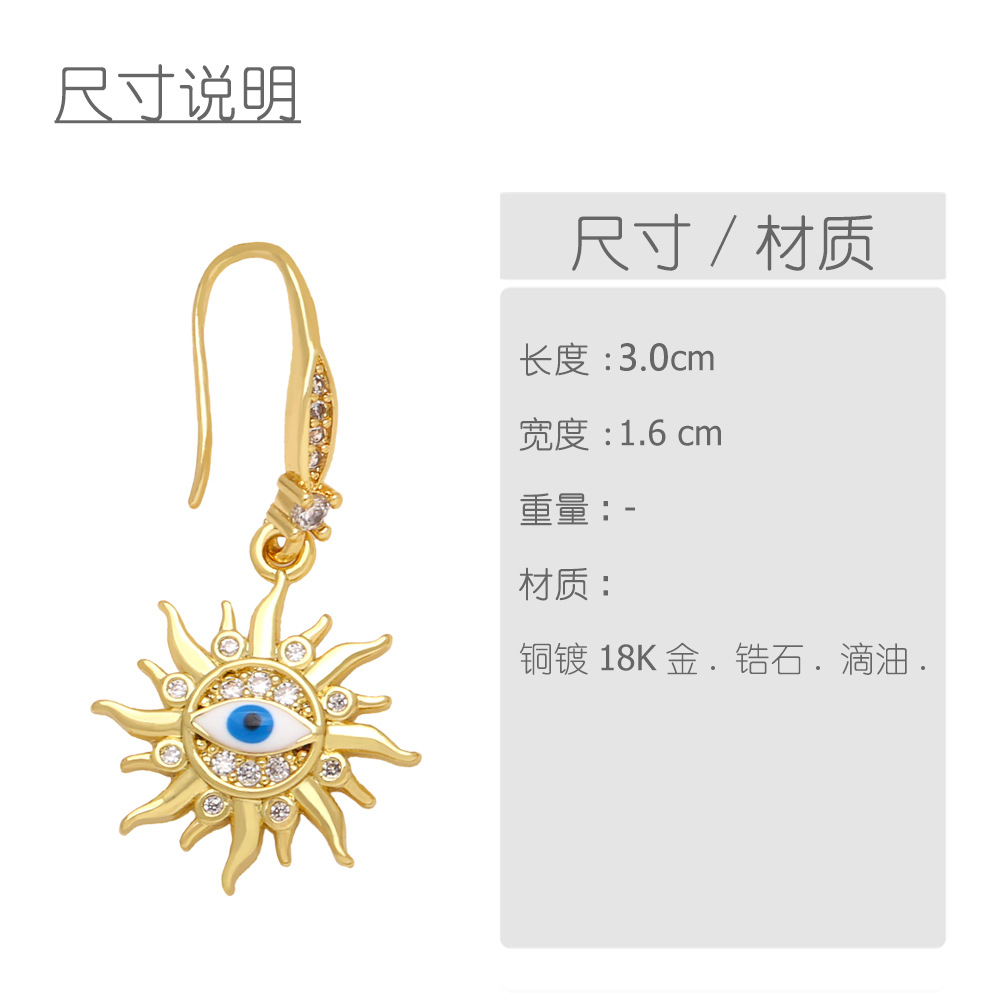 European and American earrings inlaid with diamond oil drop sun moon devil eye earrings female fashion personality ear hook erq59