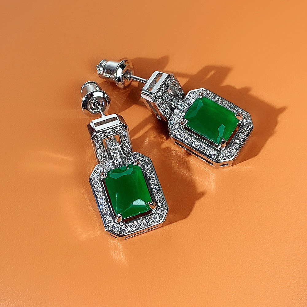 European and American elements classic atmospheric rectangular emerald earrings for women with diamond pierced emerald and zircon earrings