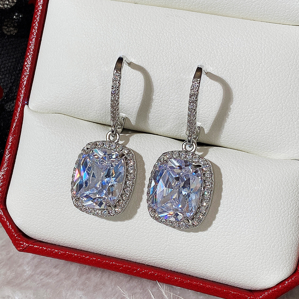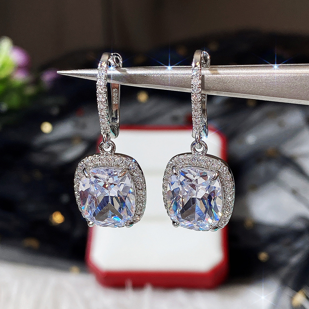 European and American evening wedding earrings brass micro-inlaid zircon bridal earrings fashionable and versatile commuting earrings for women