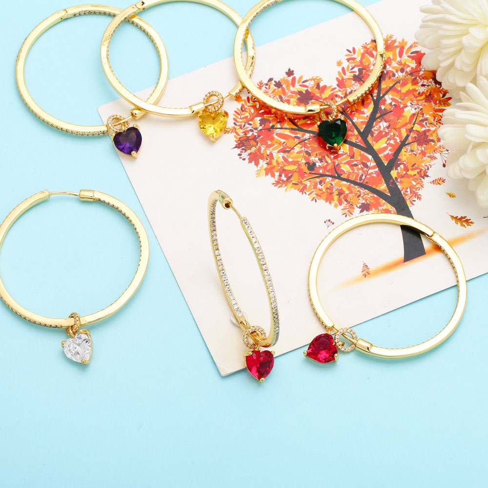 European and American style fashion heart earrings female Internet celebrity trend personality color diamond heart-shaped earrings wholesale erq98