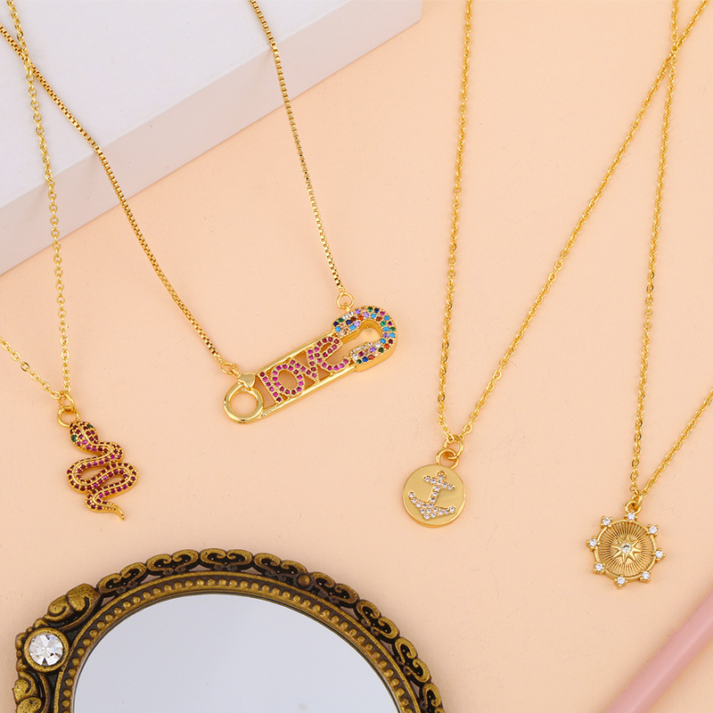 AS jewelry 26 English letters necklace female copper plated real gold inlaid zircon clavicle chain nky42