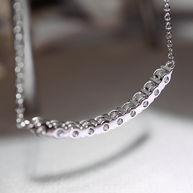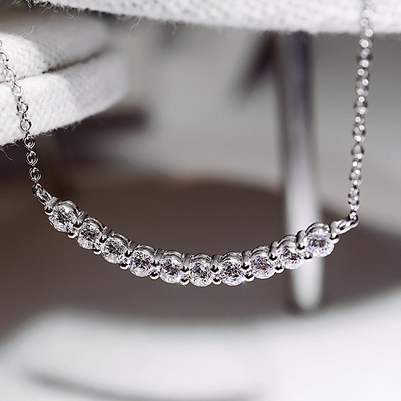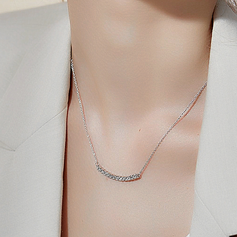European and American exclusive necklace simple sparkling diamond zircon smile necklace straight arc curved clavicle chain