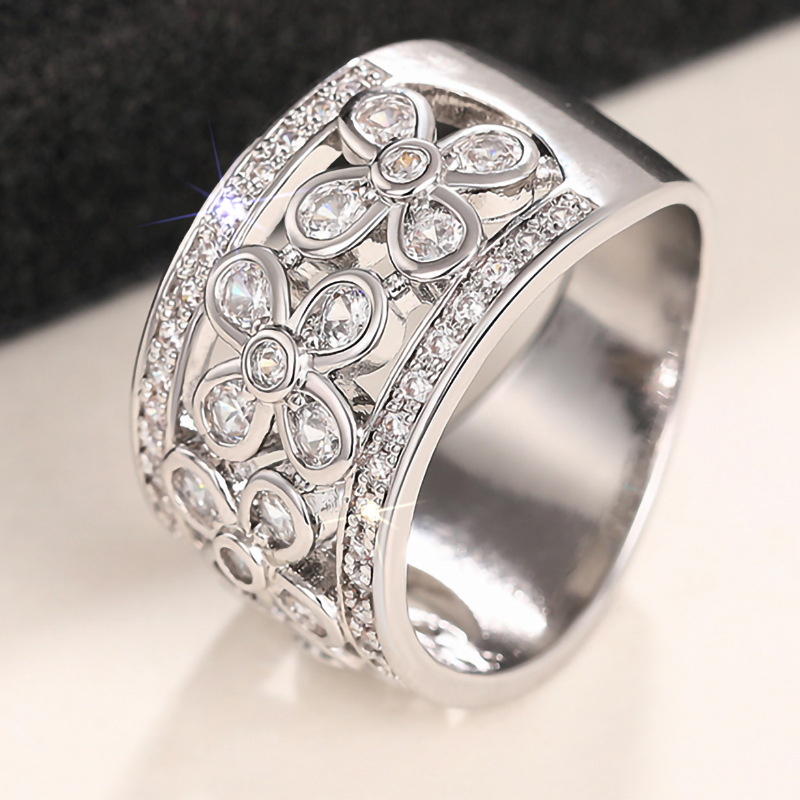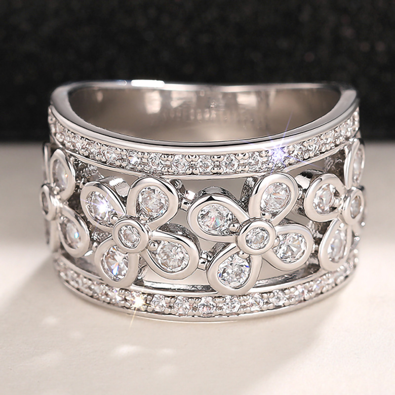 European and American exquisite flower ring women's daily matching design ring fashion jewelry