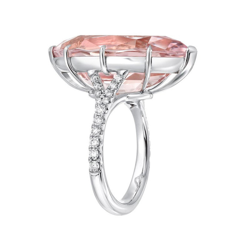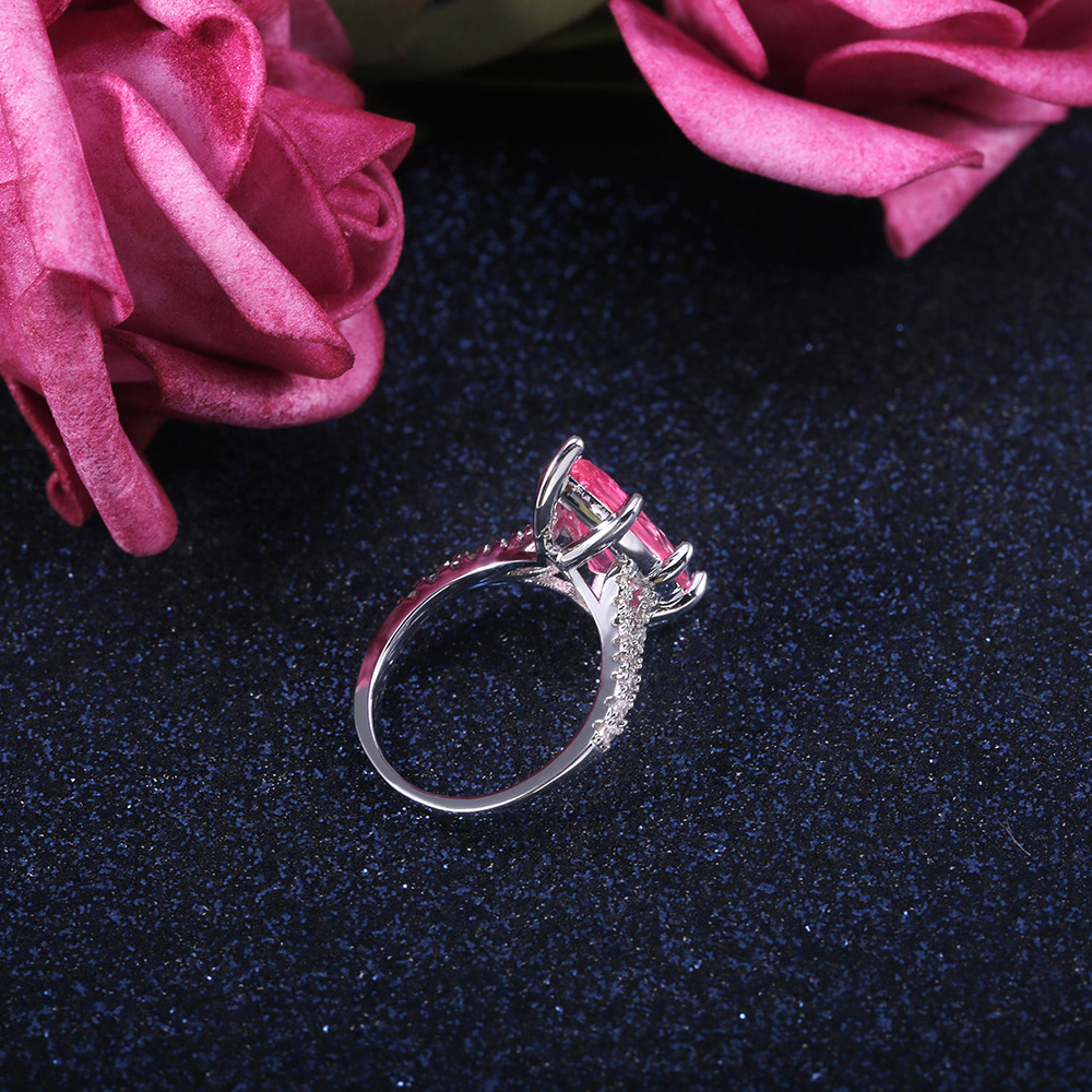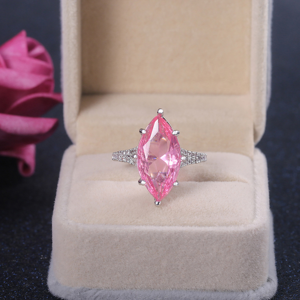 European and American fashion accessories, large marquise-shaped pink crystal ring for women, factory wholesale