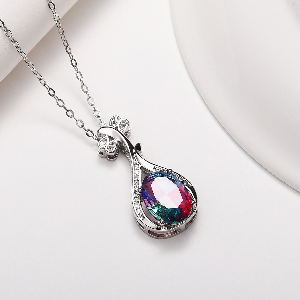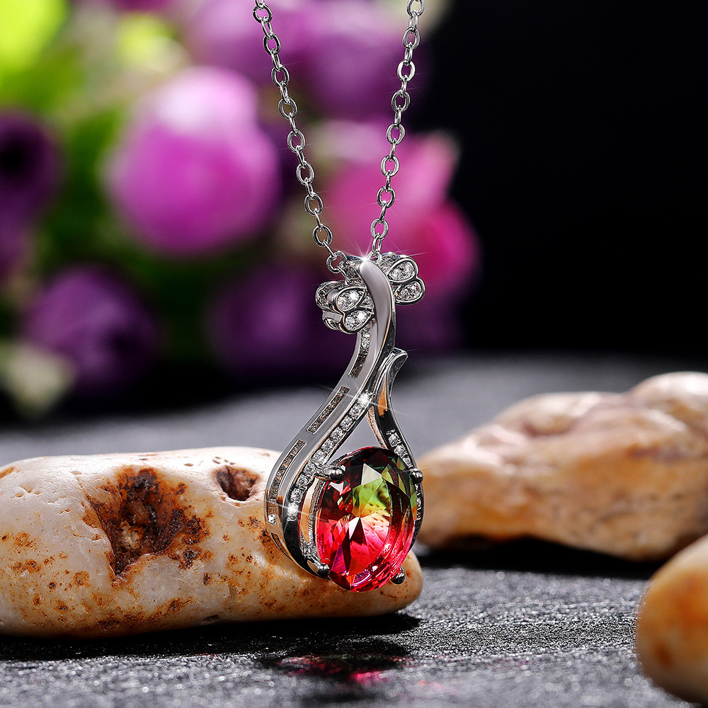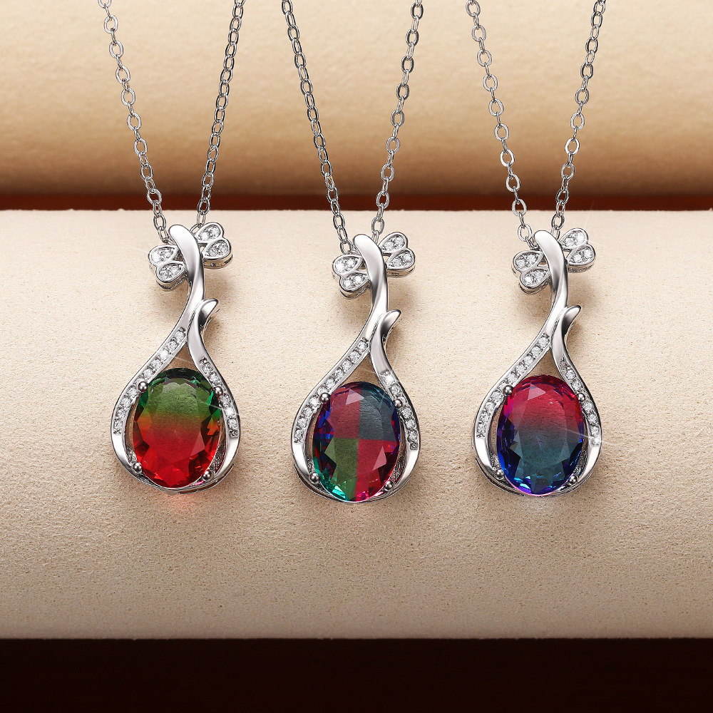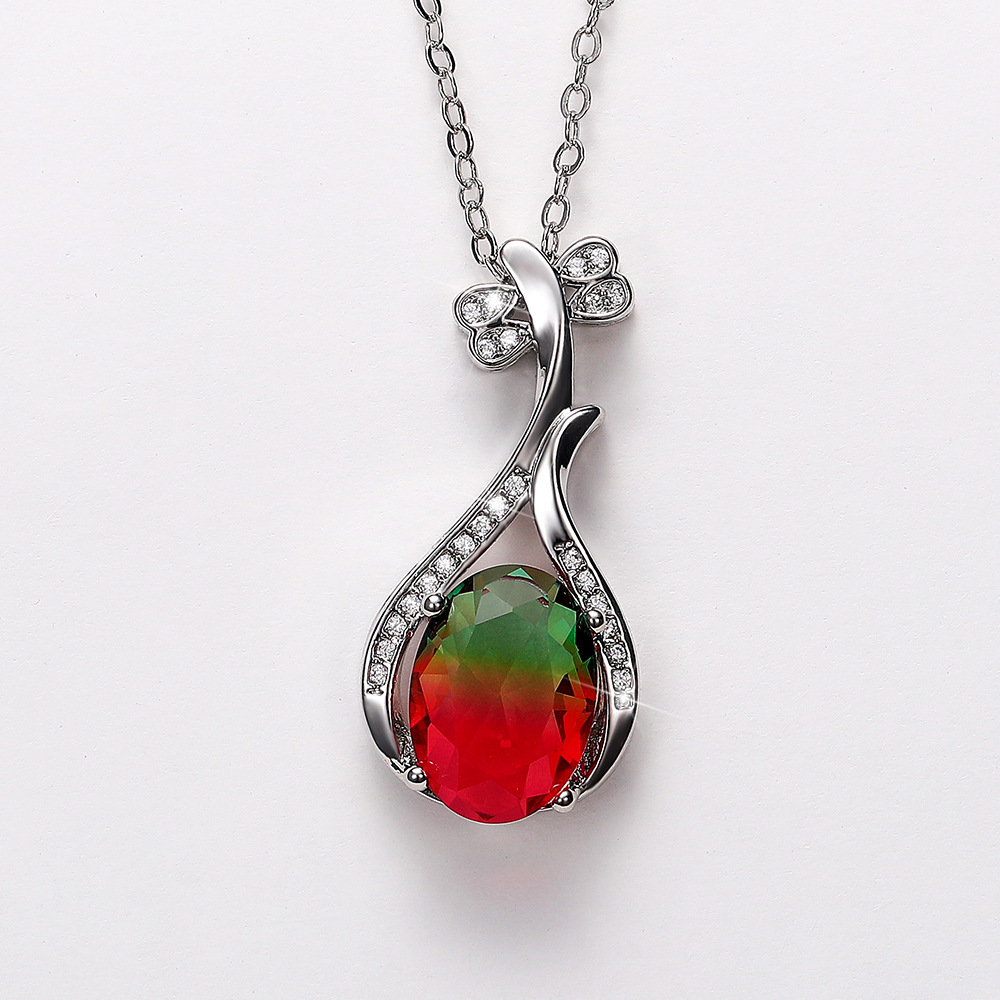 European and American fashion colored gemstone series creative Pipa pendant necklace for women micro-inlaid zircon clavicle necklace