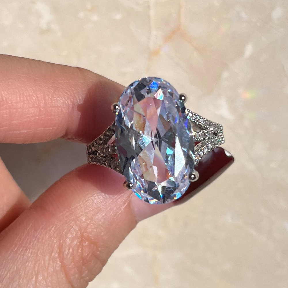 European and American fashion egg-shaped inlaid zircon ring female temperament light luxury index finger ring trendy jewelry
