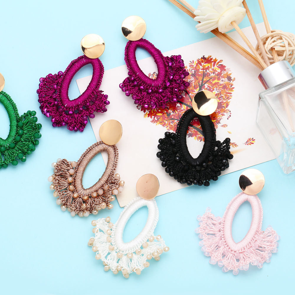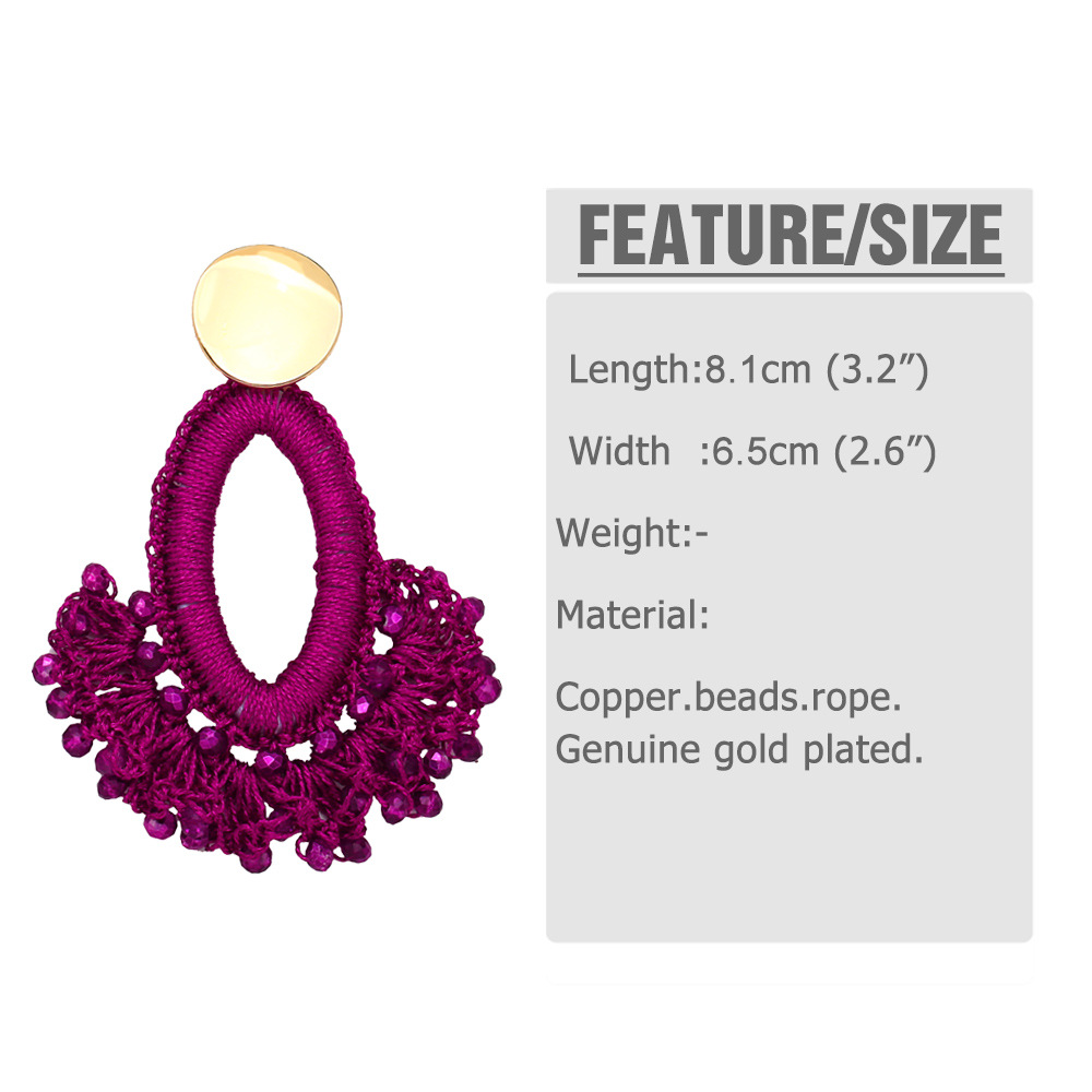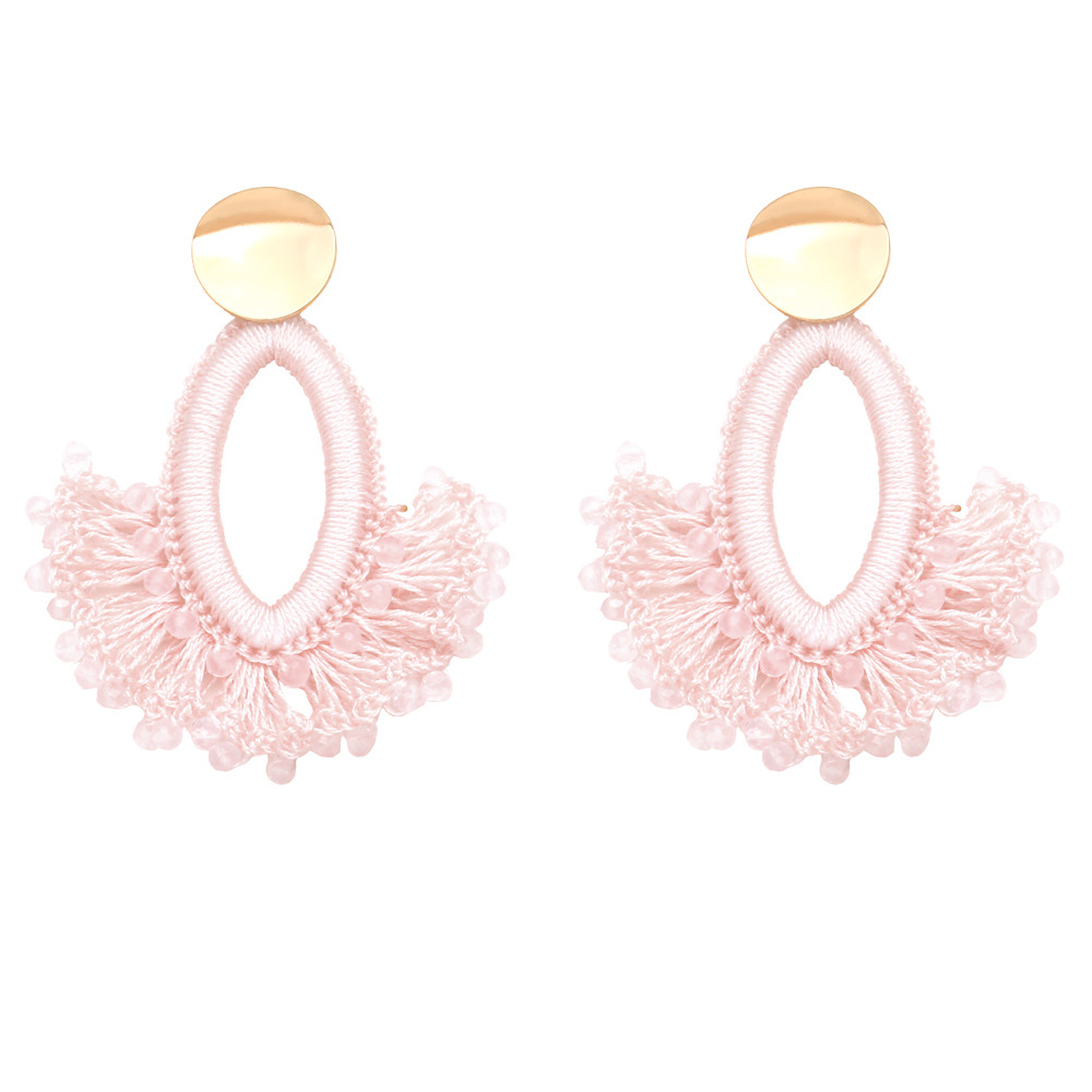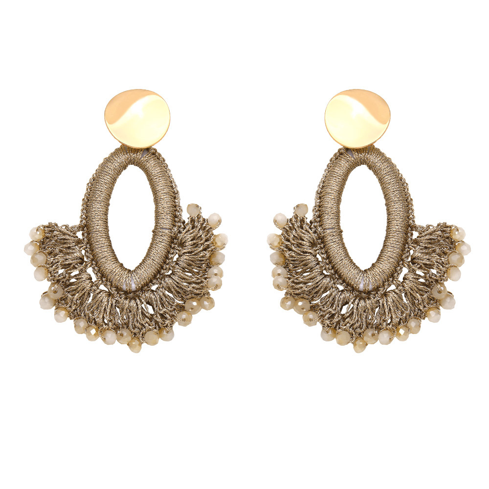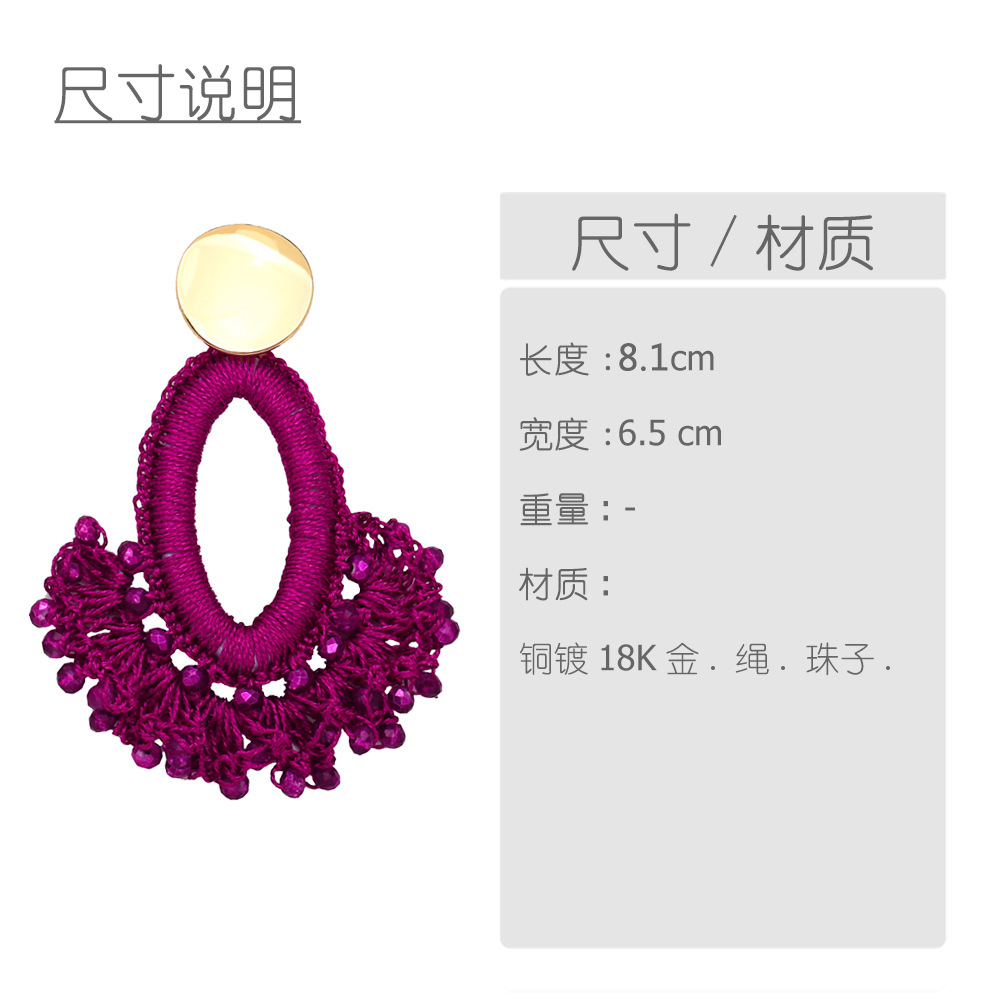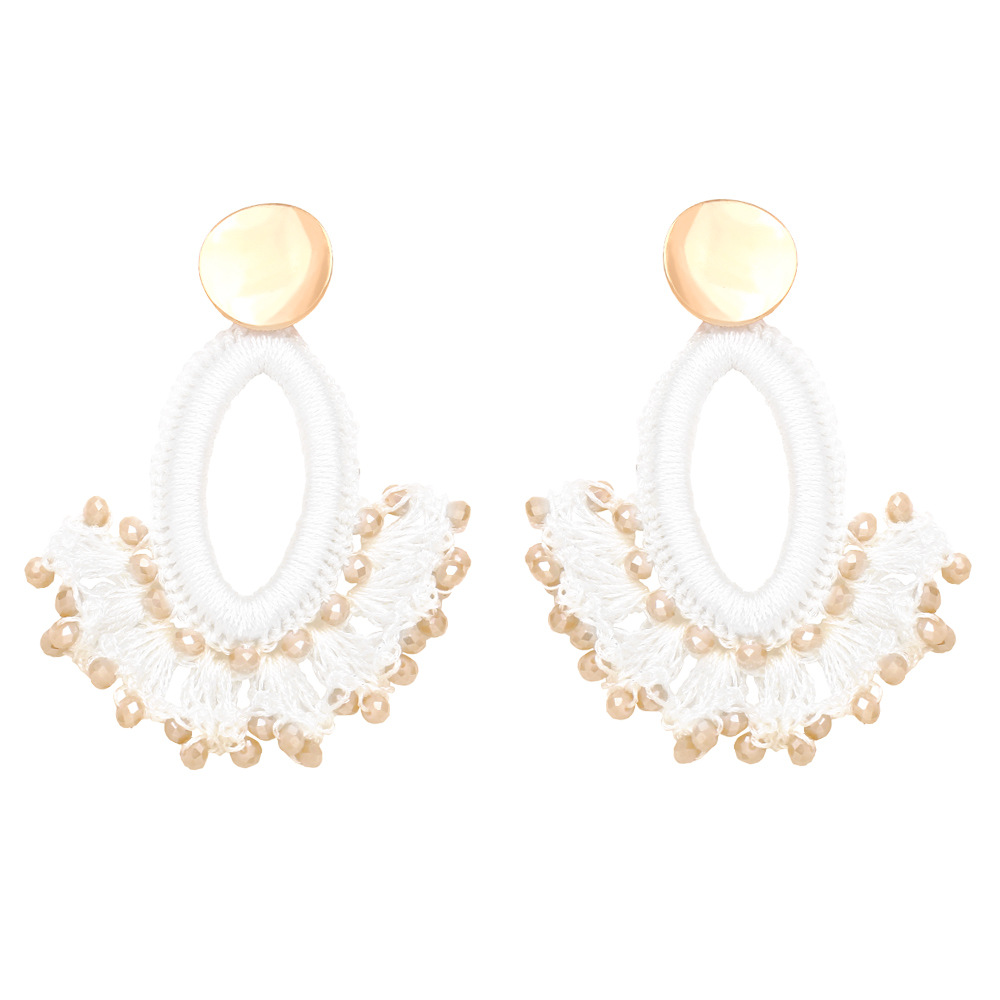 European and American fashion exaggerated handmade rice bead earrings fan-shaped tassel earrings Bohemian ethnic style earrings era304