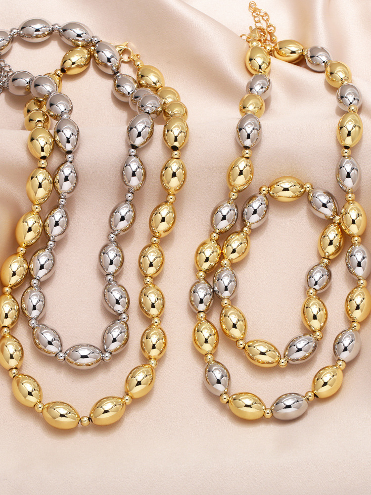 European and American fashion gold-plated round beads hip-hop necklace niche retro high-end bracelet jewelry nkn87