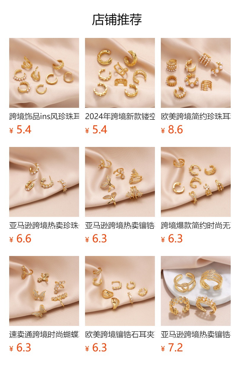 European and American fashion hollow ear clip niche high-end love gold-plated non-pierced ear clip earrings era150