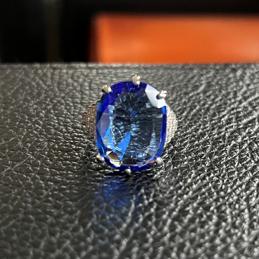 European and American fashion hot selling engagement oval ring inlaid with royal blue topaz ring jewelry wholesale