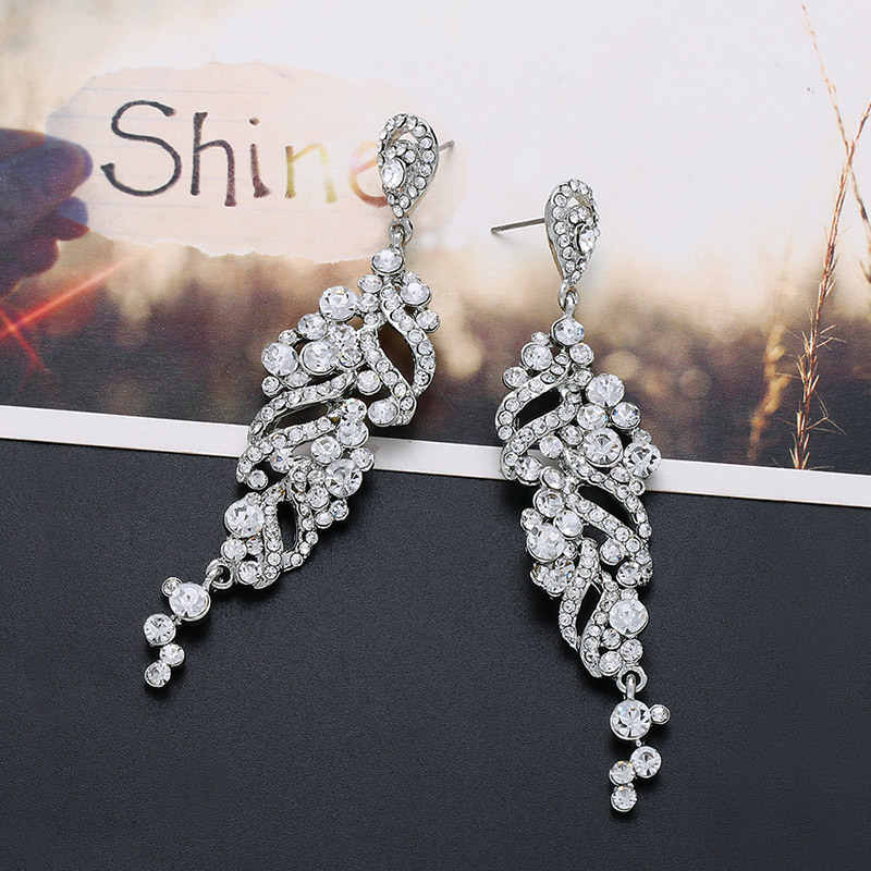 European and American fashion inlaid crystal tassel bridal earrings women's niche design earring accessories ern72