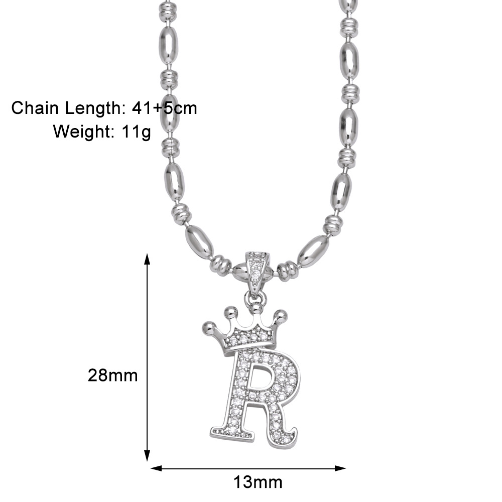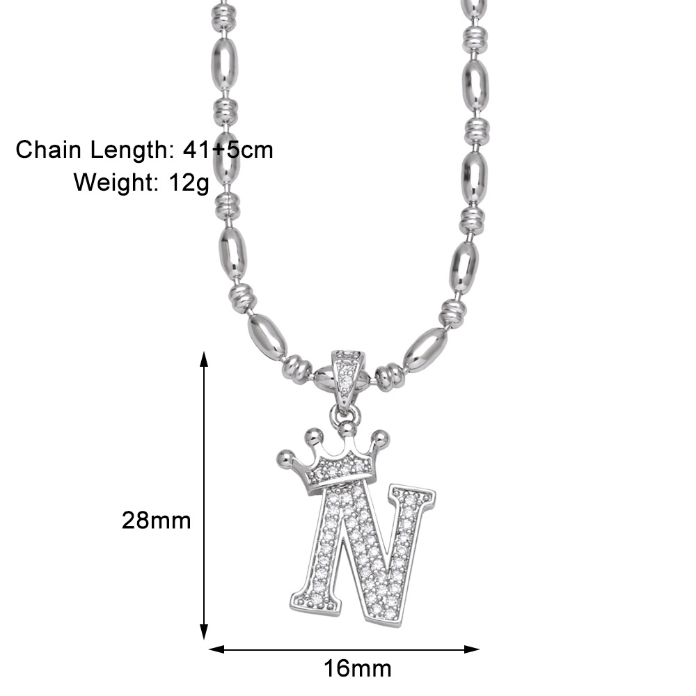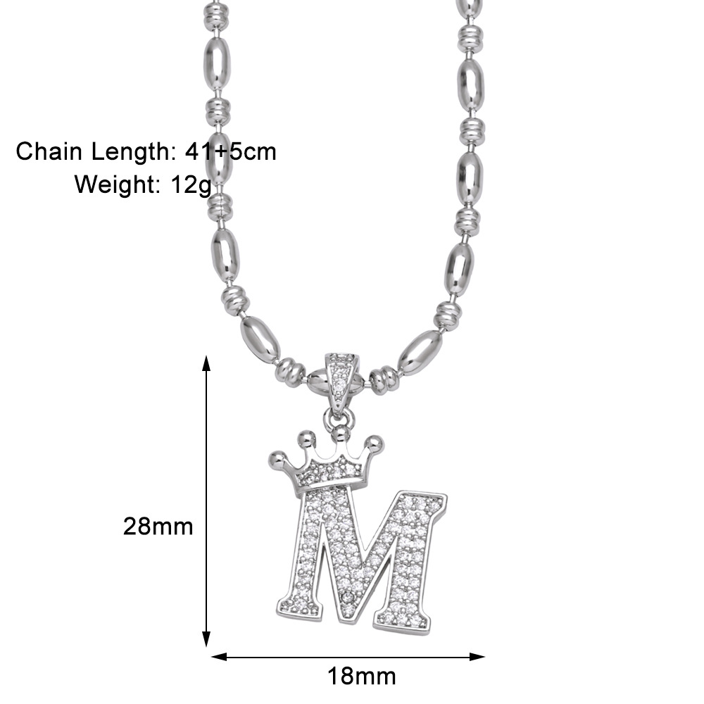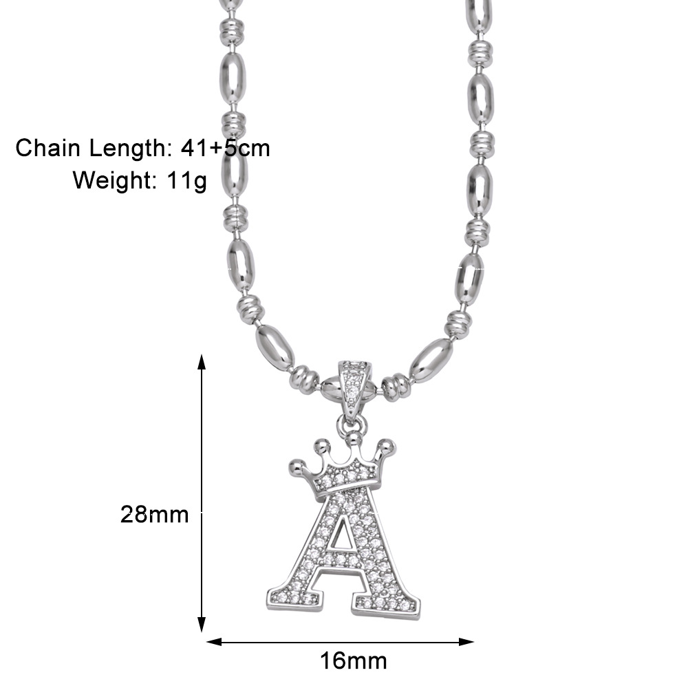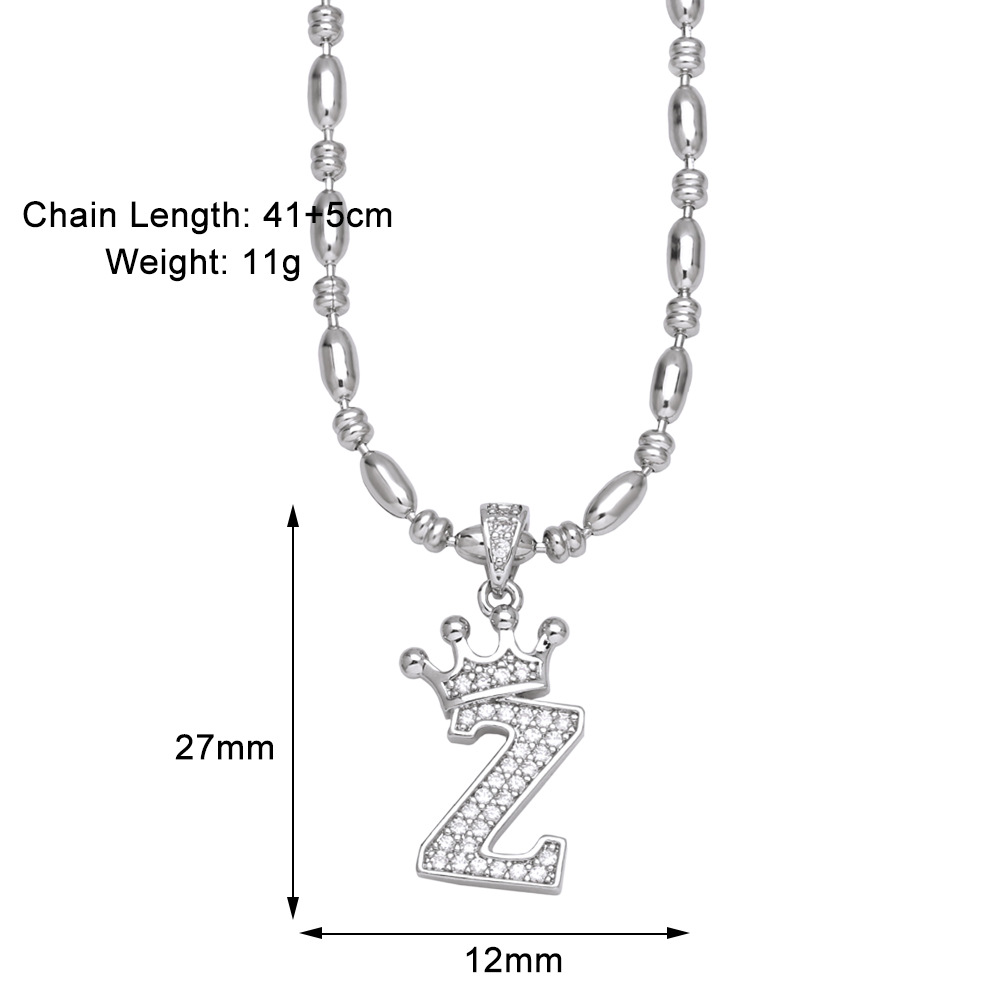 European and American fashion inlaid zircon crown 26 English letters necklace hip hop men's clavicle chain nkp55