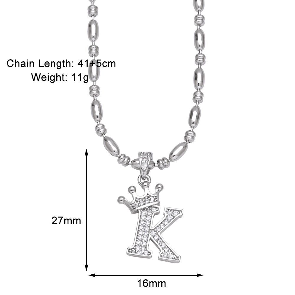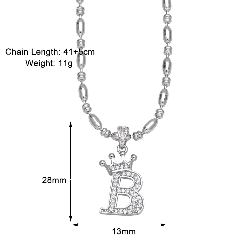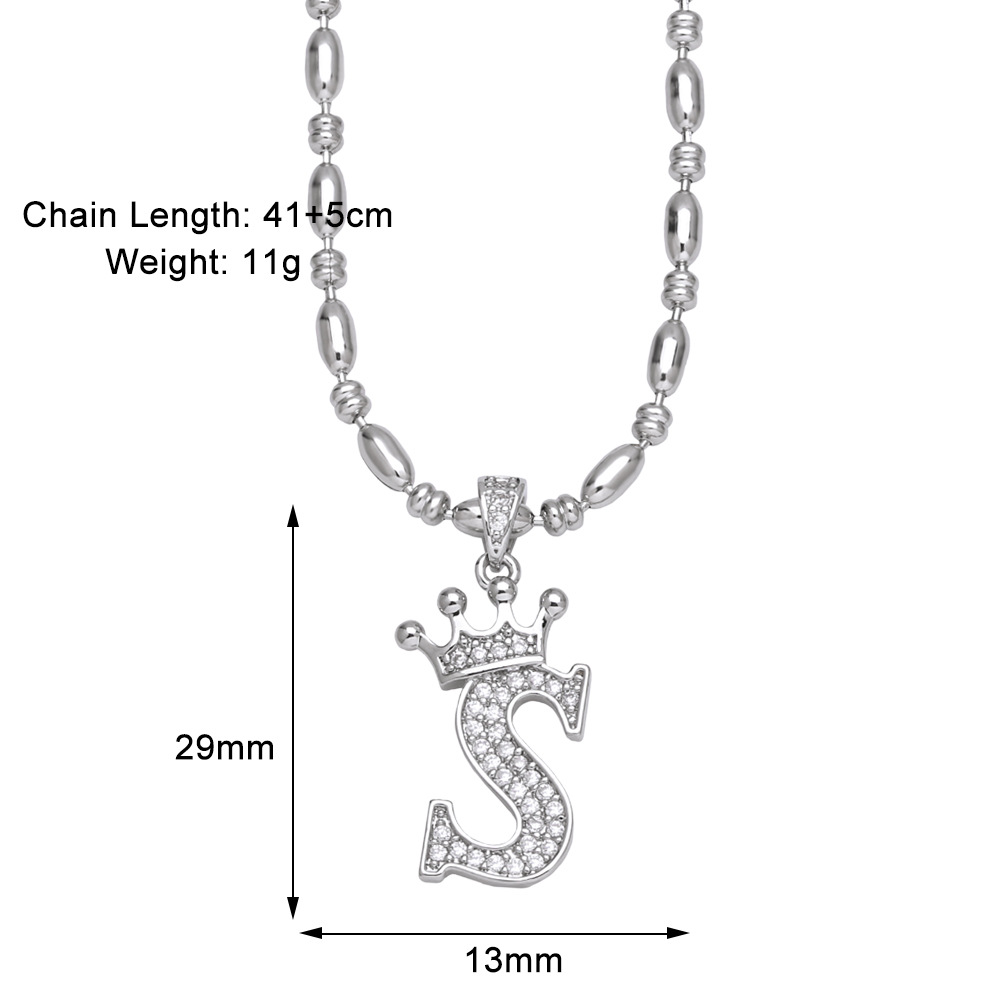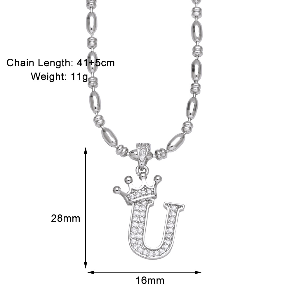 European and American fashion inlaid zircon crown 26 English letters necklace hip hop men's clavicle chain nkp55