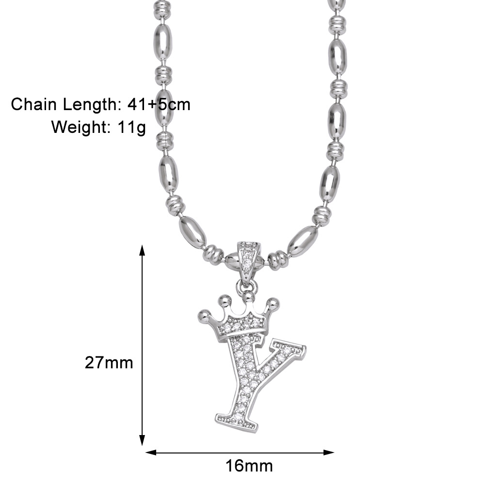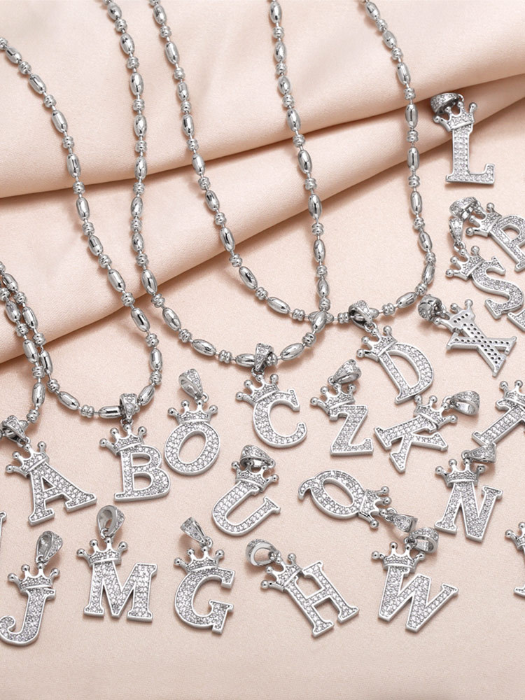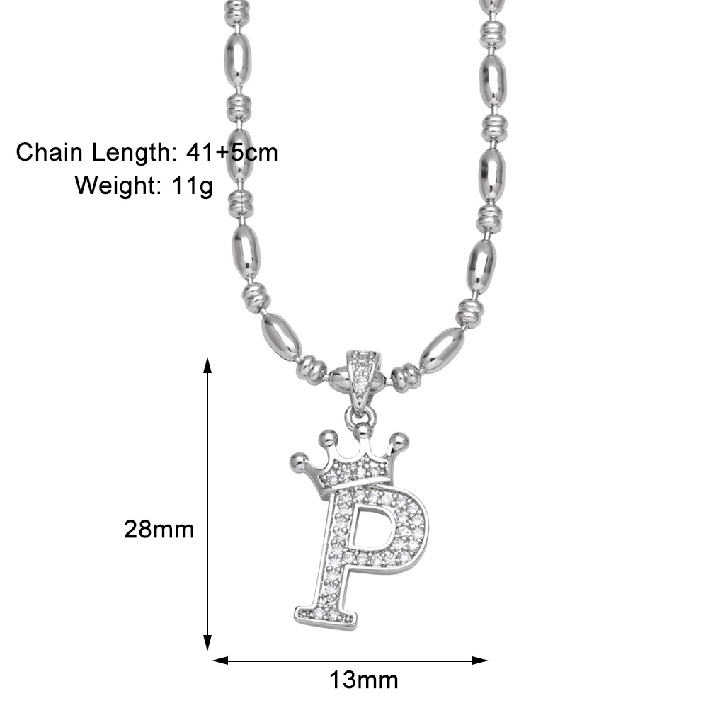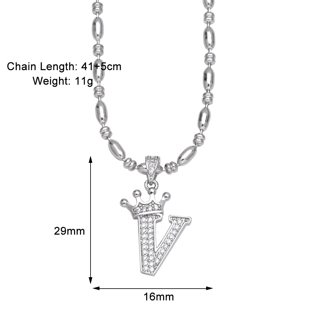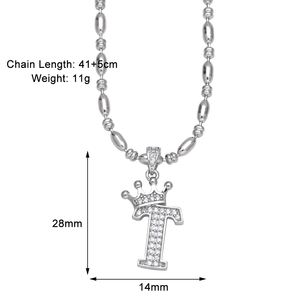 European and American fashion inlaid zircon crown 26 English letters necklace hip hop men's clavicle chain nkp55