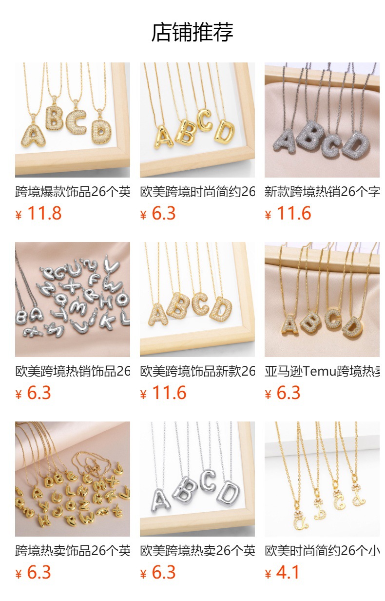 Letter necklace European and American new color zircon necklace with diamond surname English AZ letter necklace nkp25