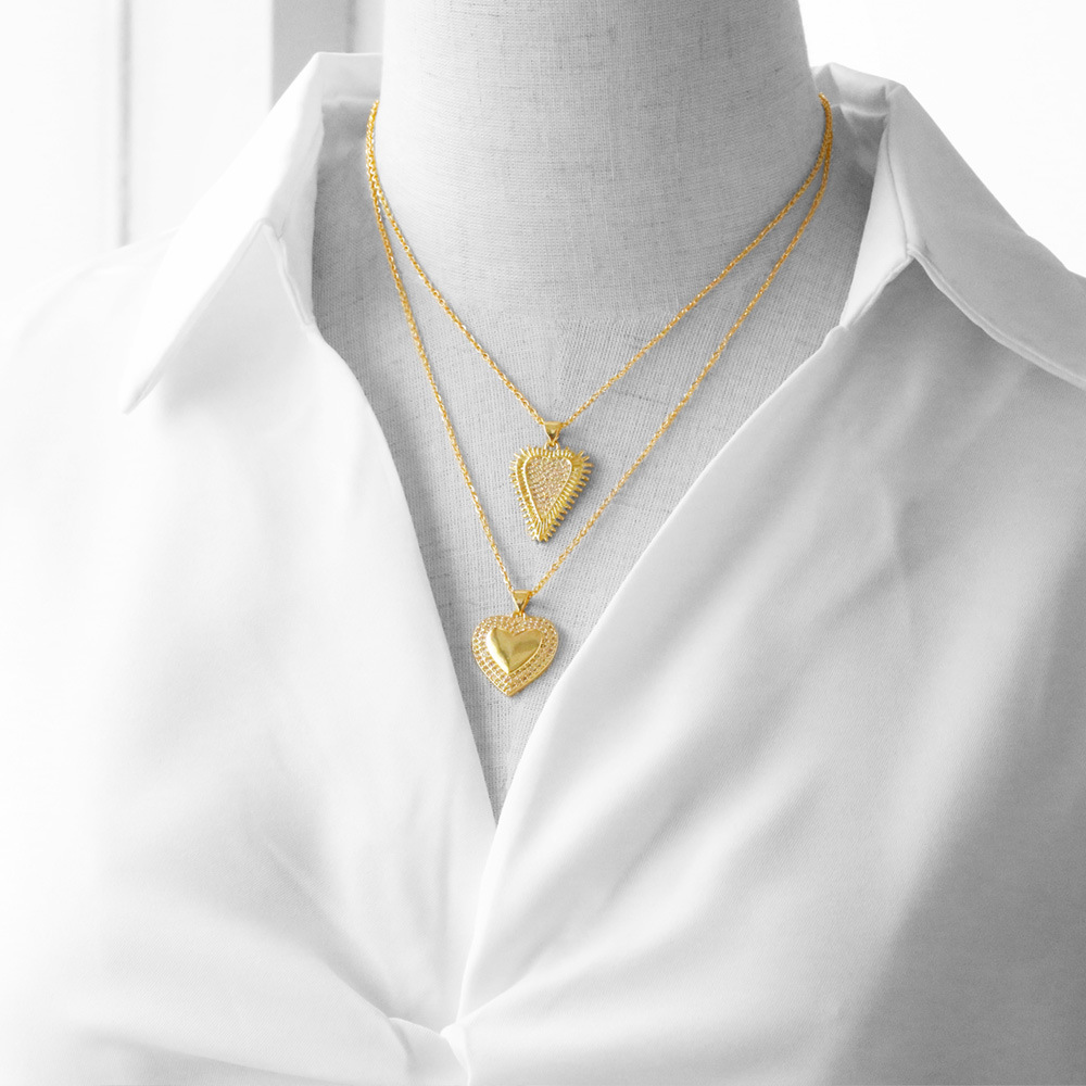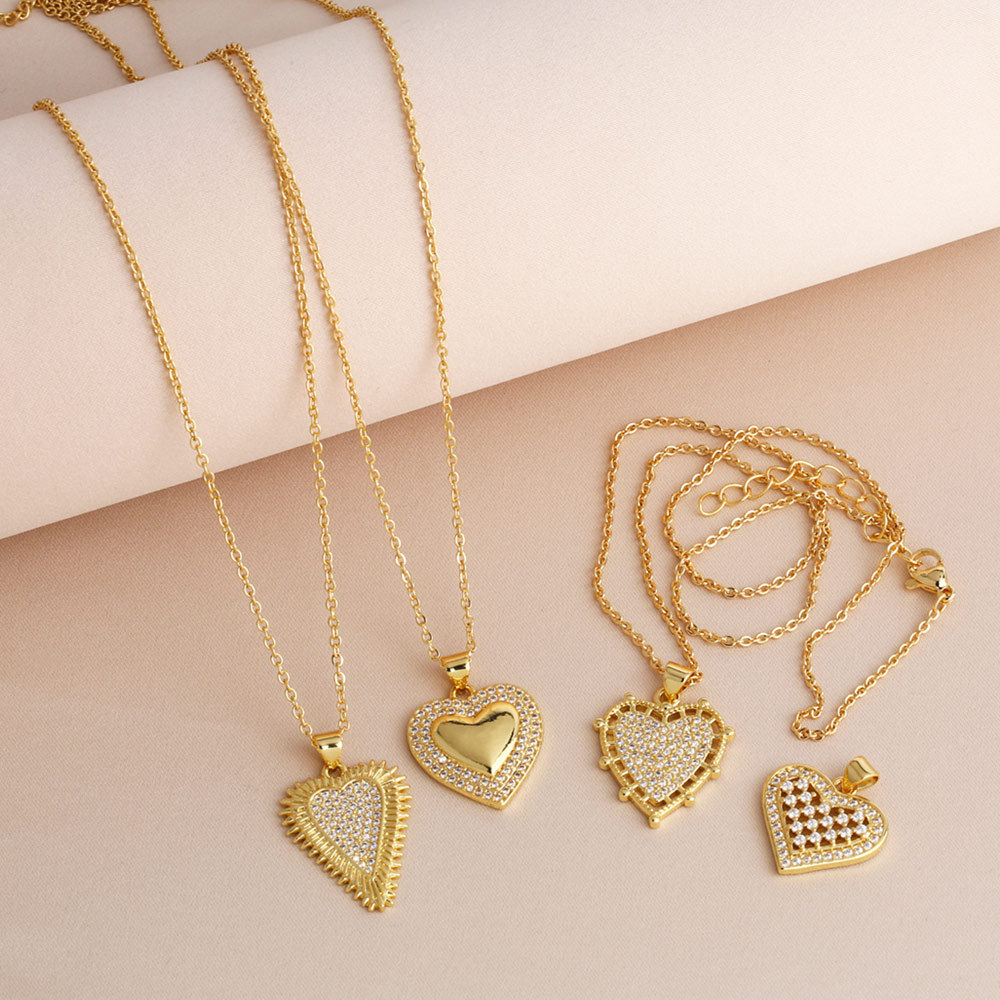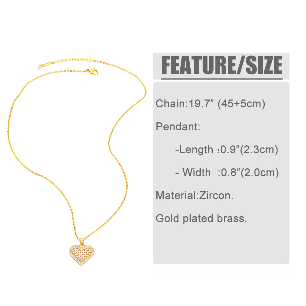 European and American fashion inlaid zircon heart pendant necklace personality creative gold-plated clavicle chain accessories nkb852