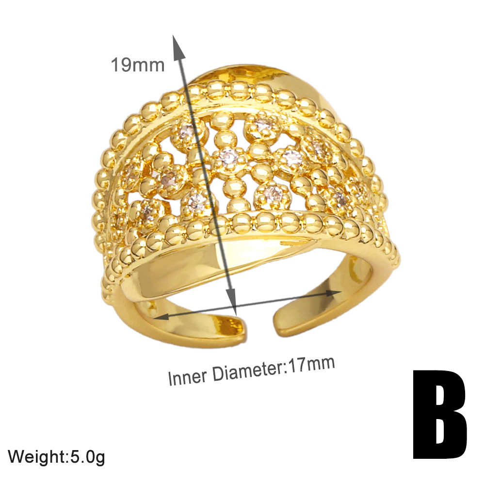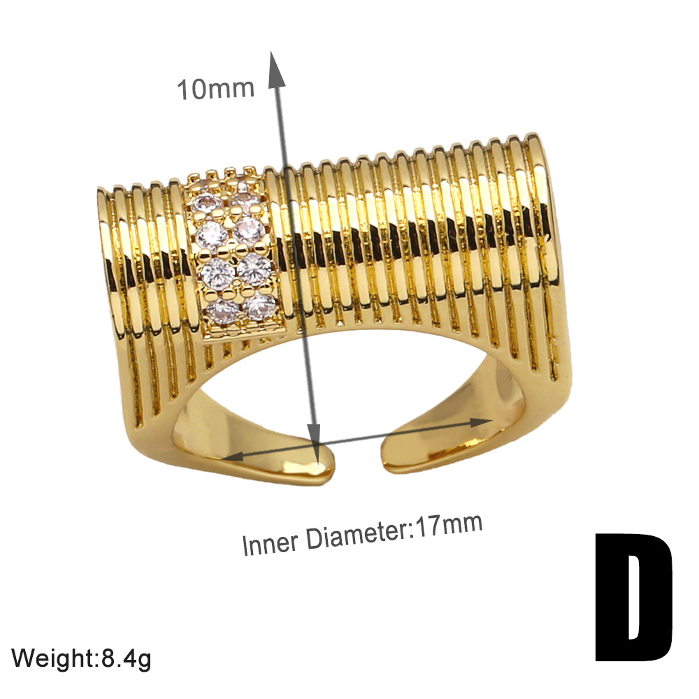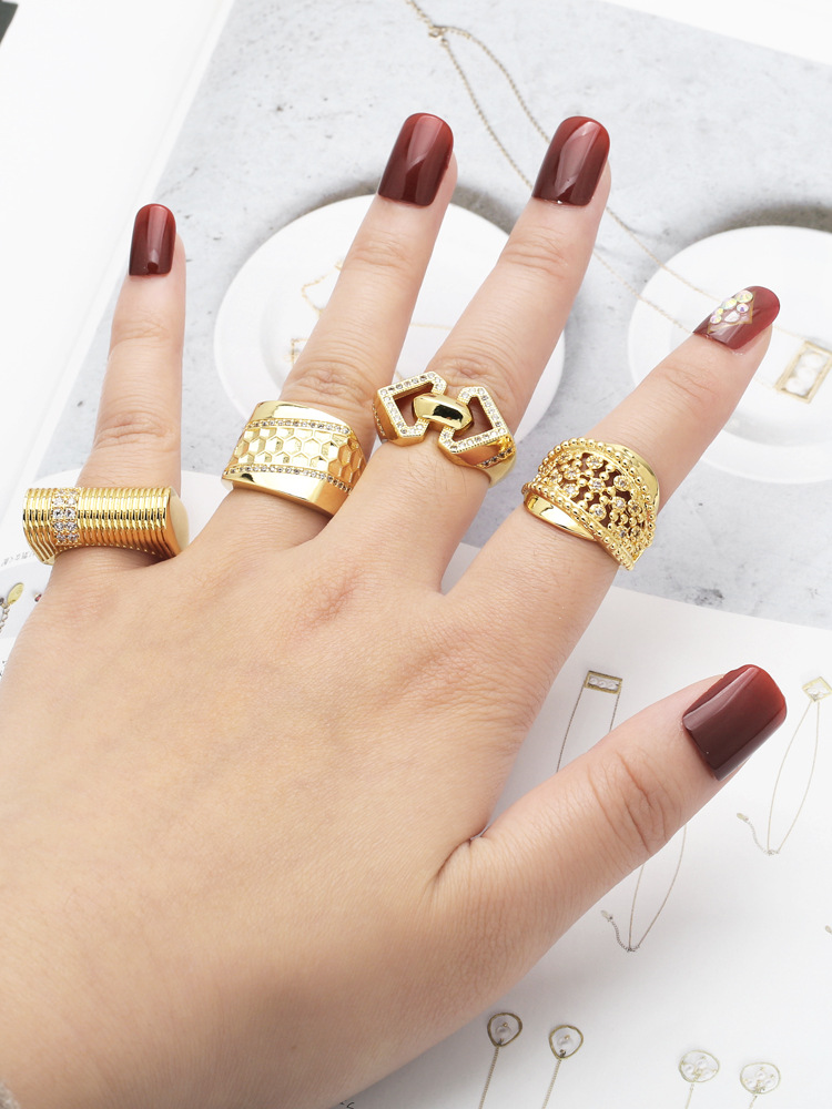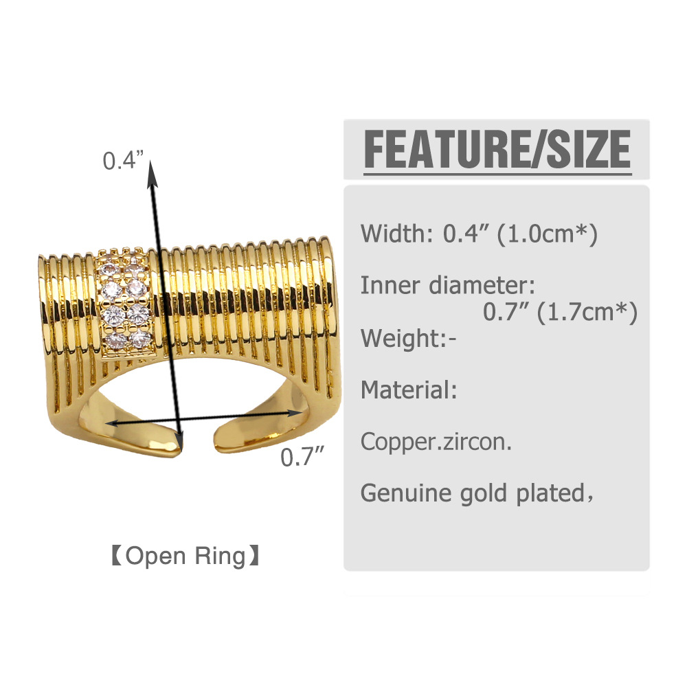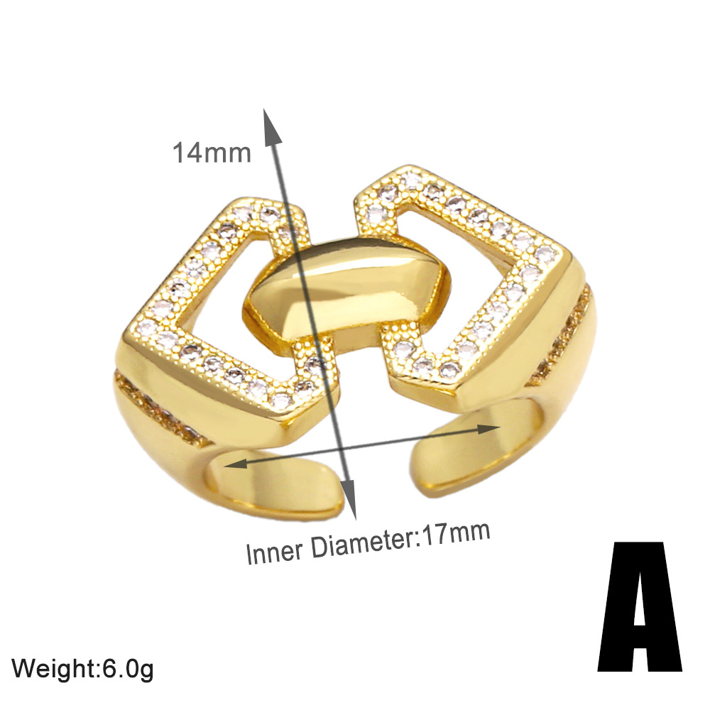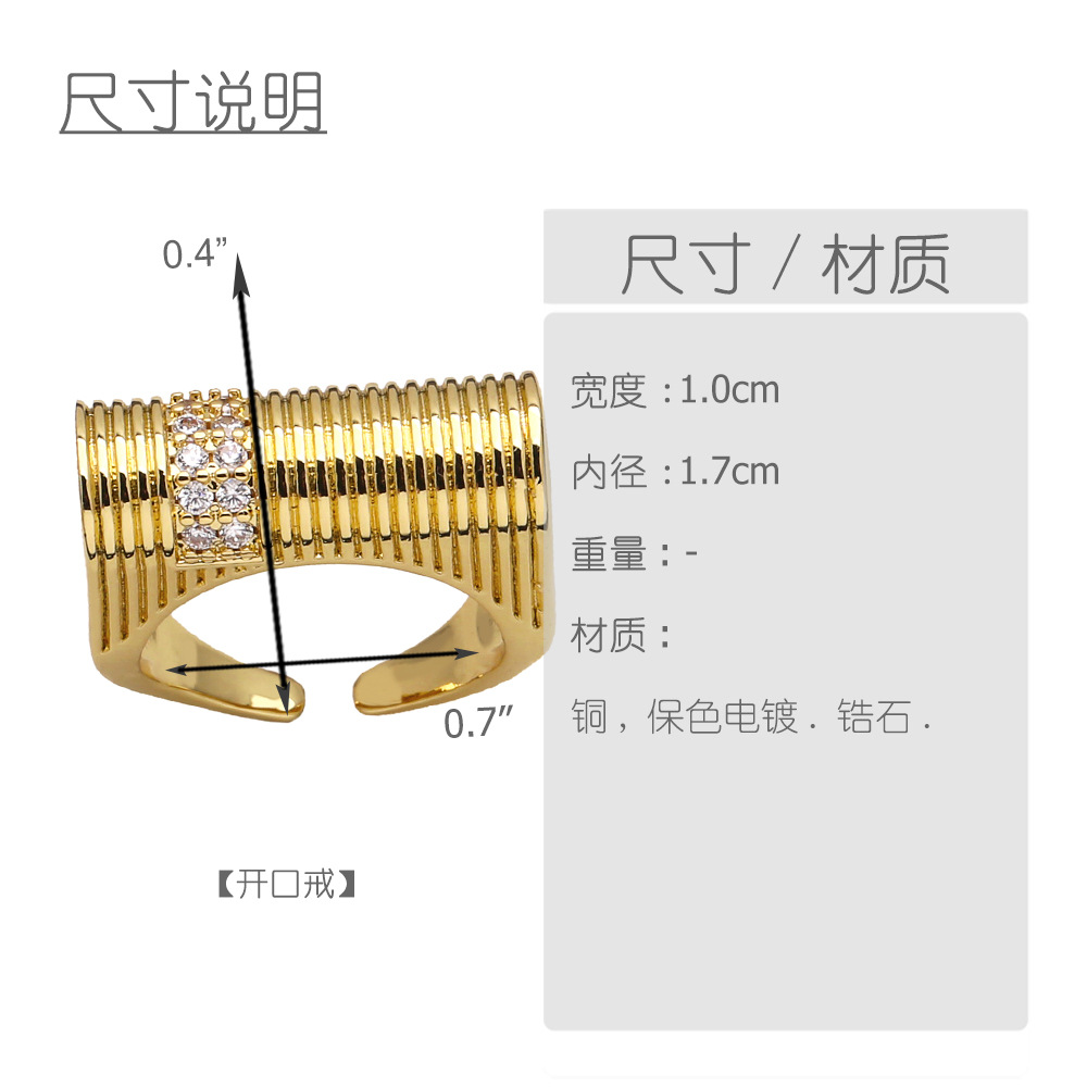 European and American fashion inlaid zircon ring female personality versatile gold-plated geometric open ring ring rir01