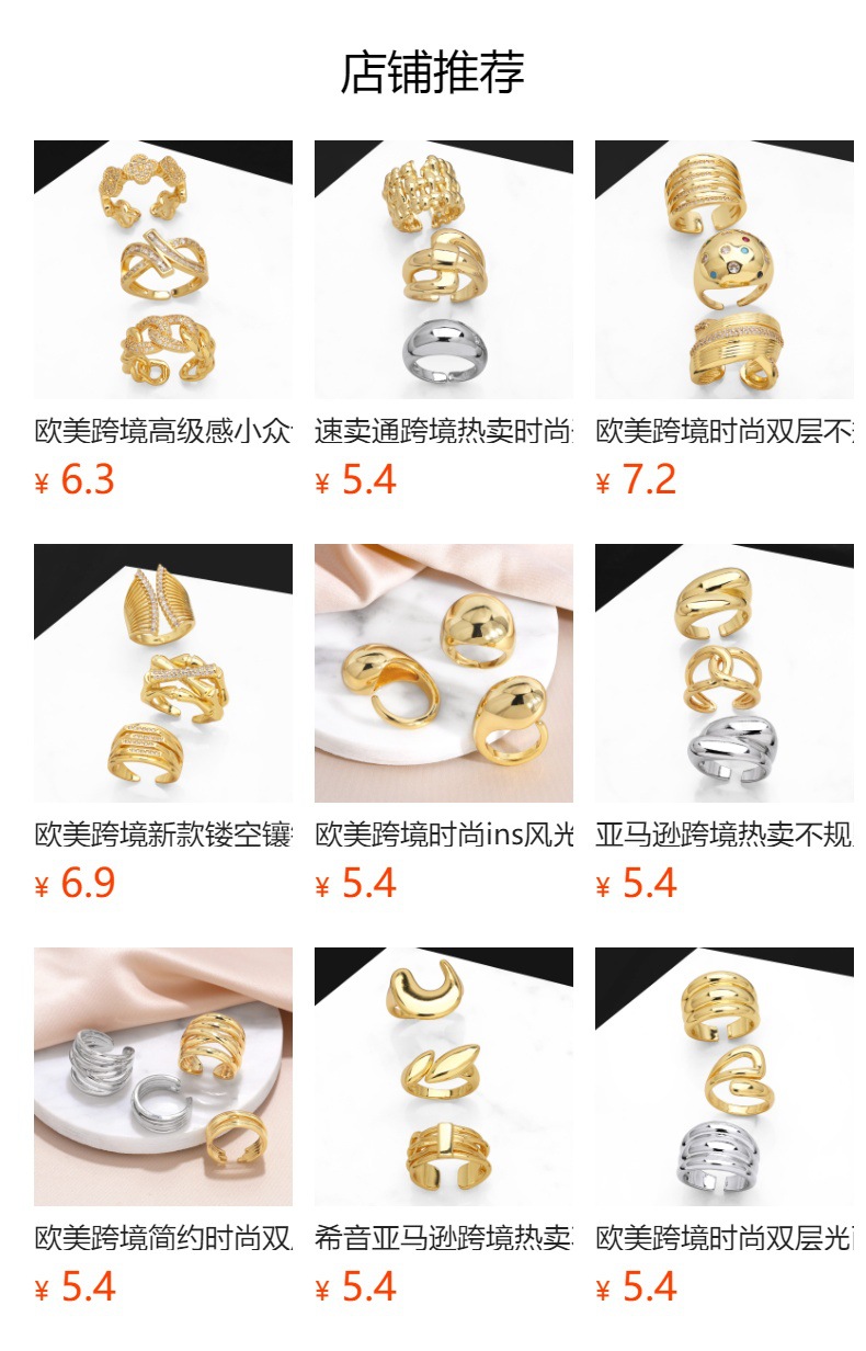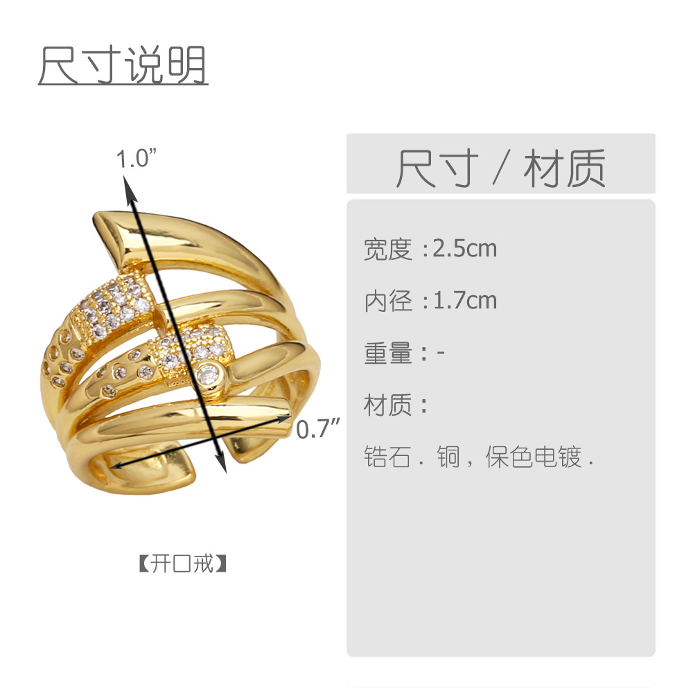 European and American luxury design ring fashionable temperament horse eye zircon ring multi-layer hollow design index finger ring
