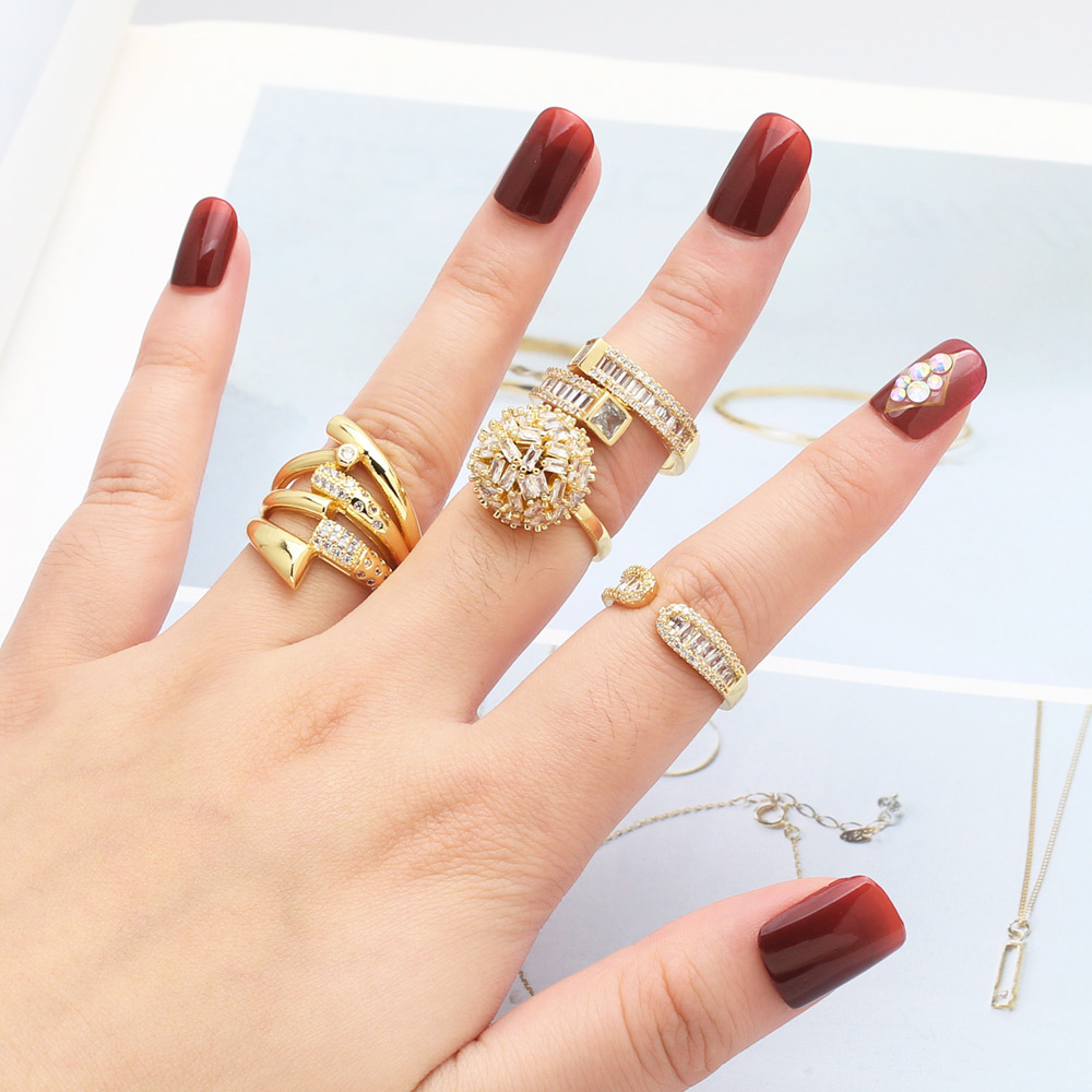 European and American fashion inlaid zircon ring female style light luxury high-end gold-plated ring jewelry wholesale ris48