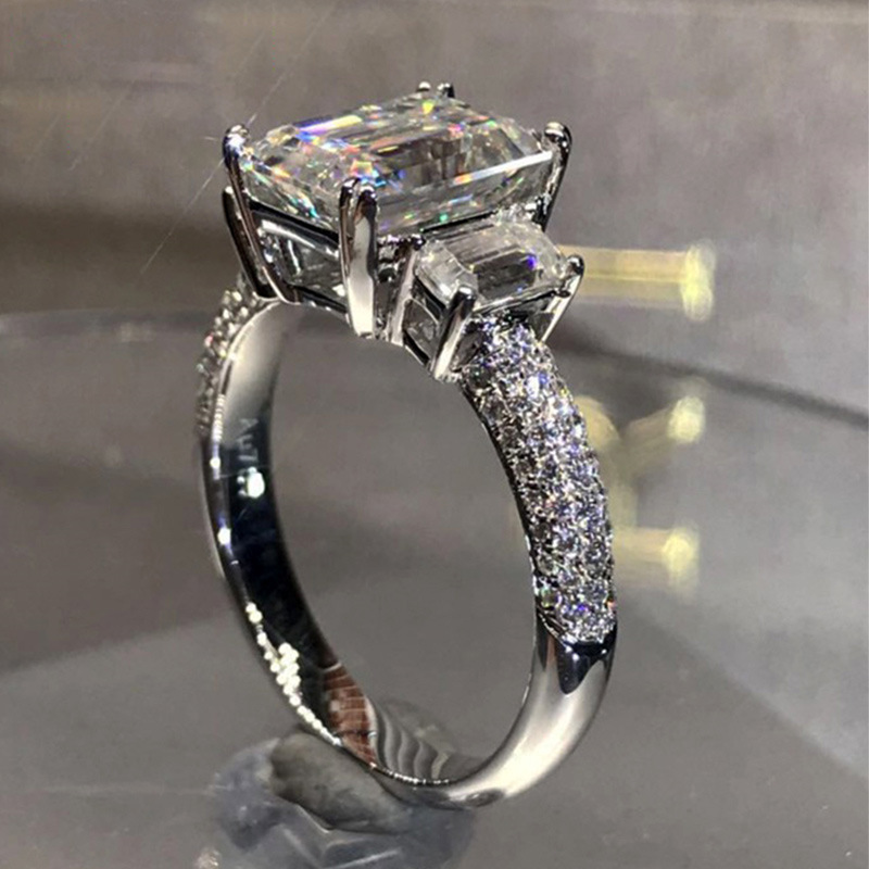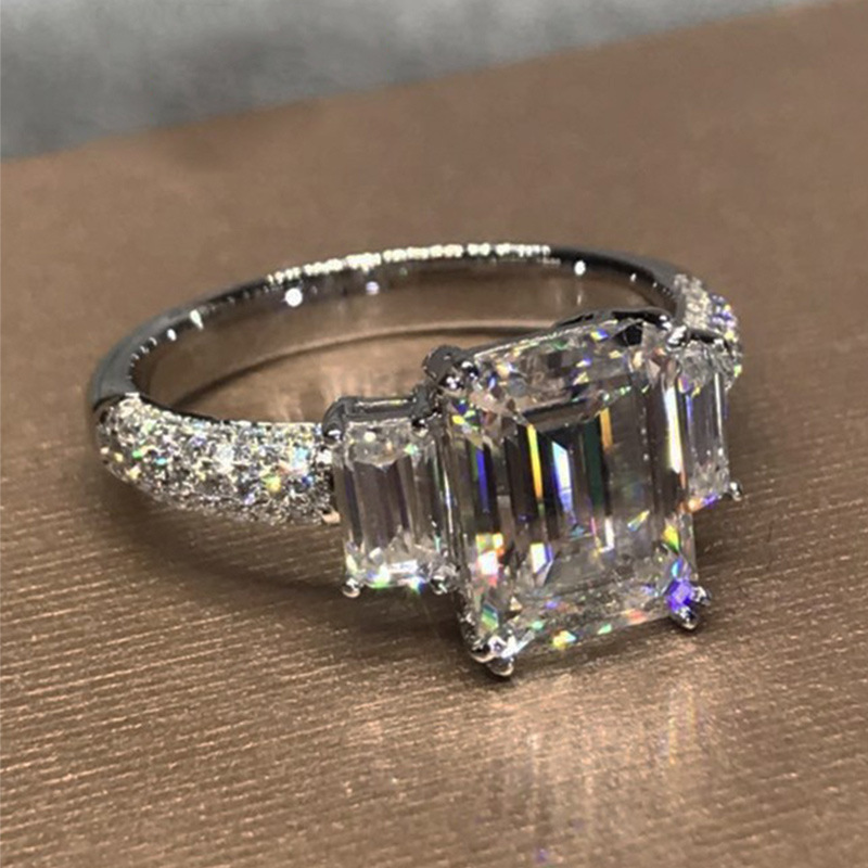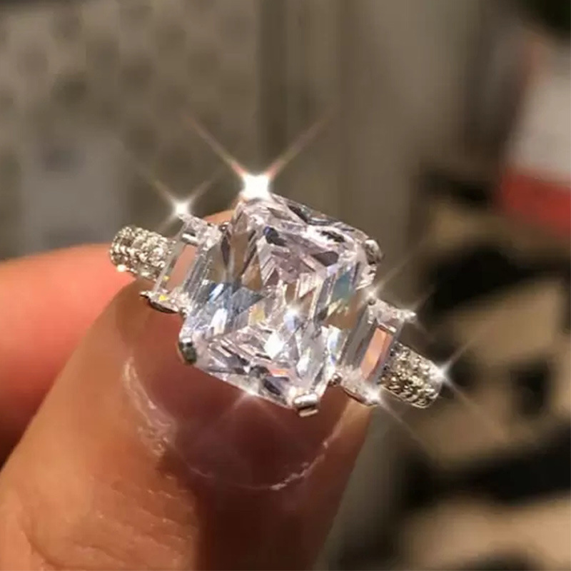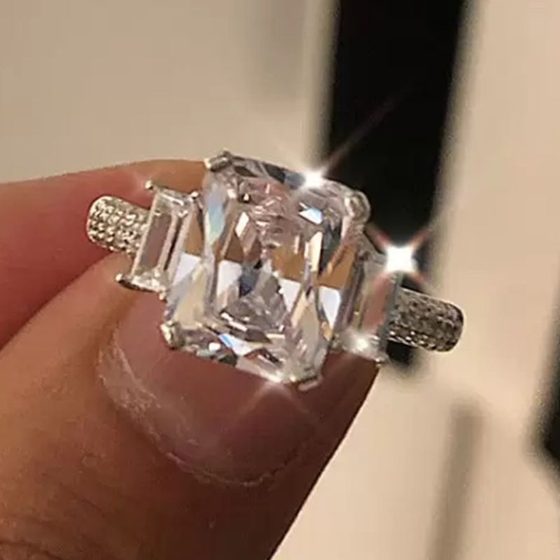 European and American fashion jewelry engagement proposal princess diamond ring female copper plated white gold ring jewelry