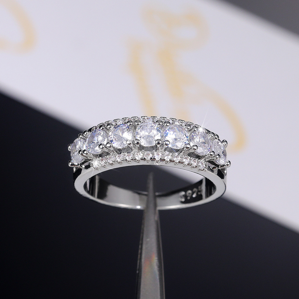 Micro-inlaid celebrity style classic all-match popular ring six-claw zircon wedding ring European and American style light luxury ring