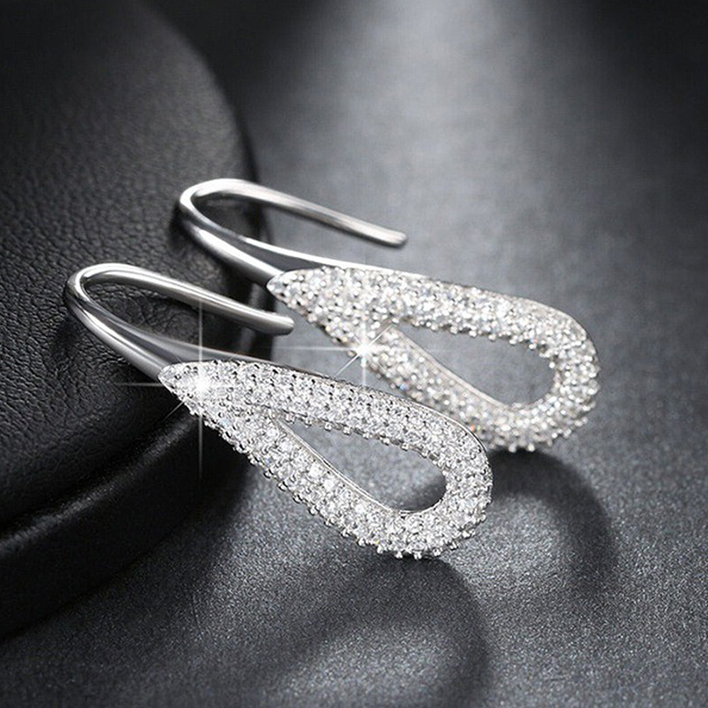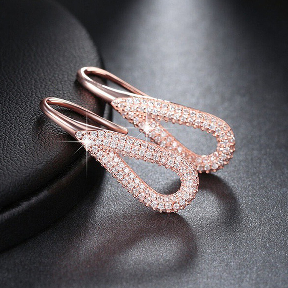 European and American fashion Korean jewelry hollow full inlaid zircon teardrop earrings elegant women's earrings wholesale