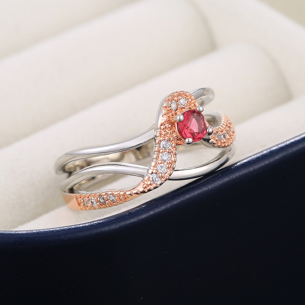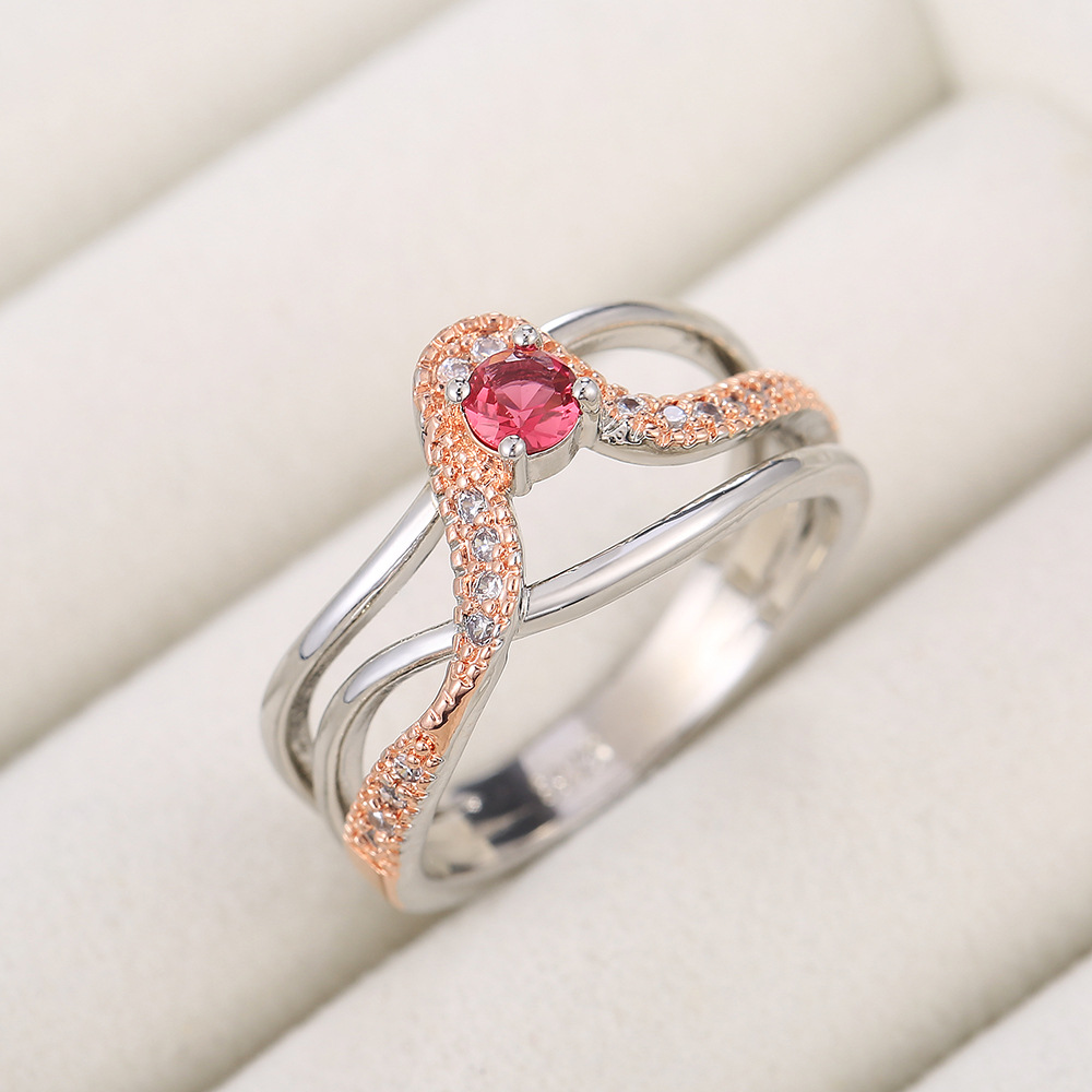 European and American fashion ladies' two-tone ring streamlined geometric copper inlaid zircon ring popular jewelry wholesale