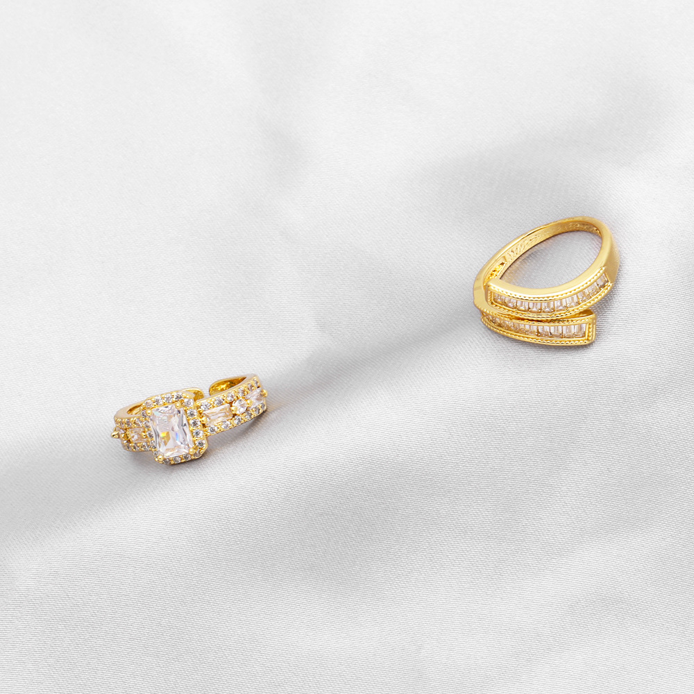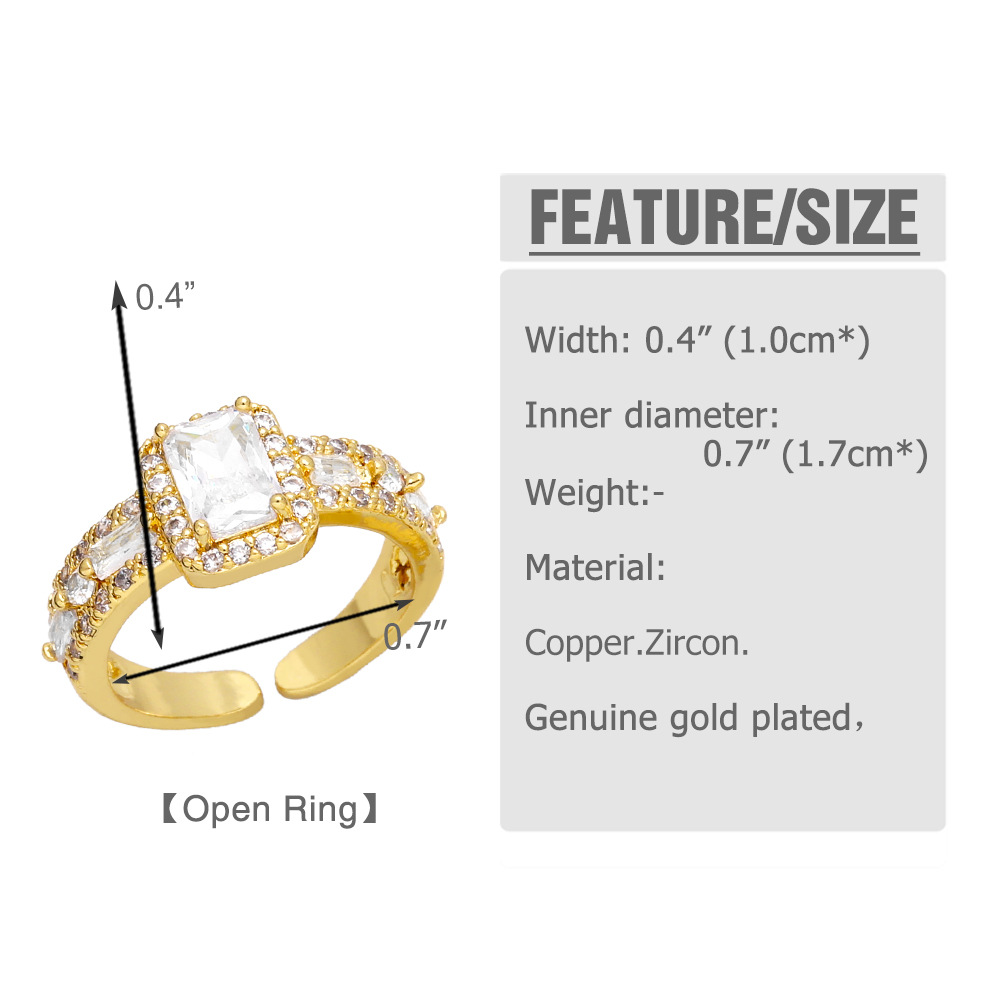 European and American fashion light luxury high-end square zircon ring female trendy retro fashion open ring rik24