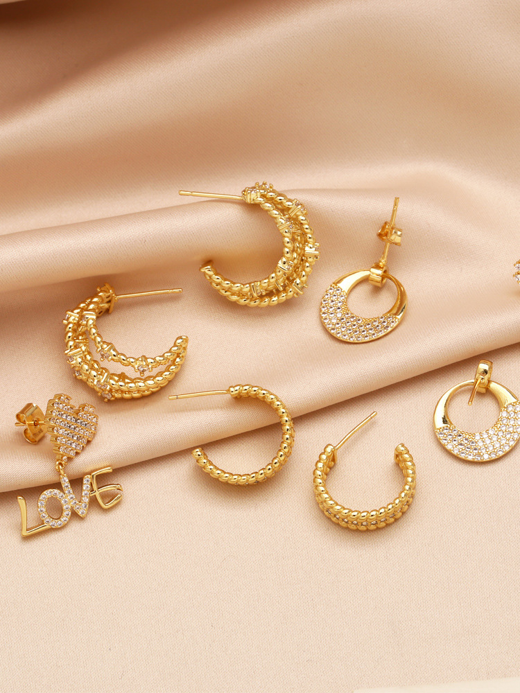 European and American fashion love love pendant earrings female personality creative C-shaped gold-plated earrings earrings erw38