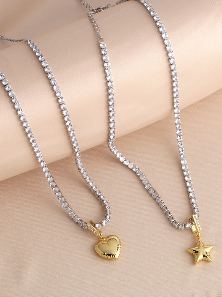European and American fashion love necklace niche design versatile inlaid zircon gold-plated star clavicle chain nkq91