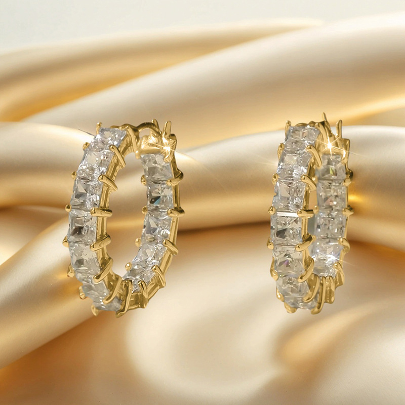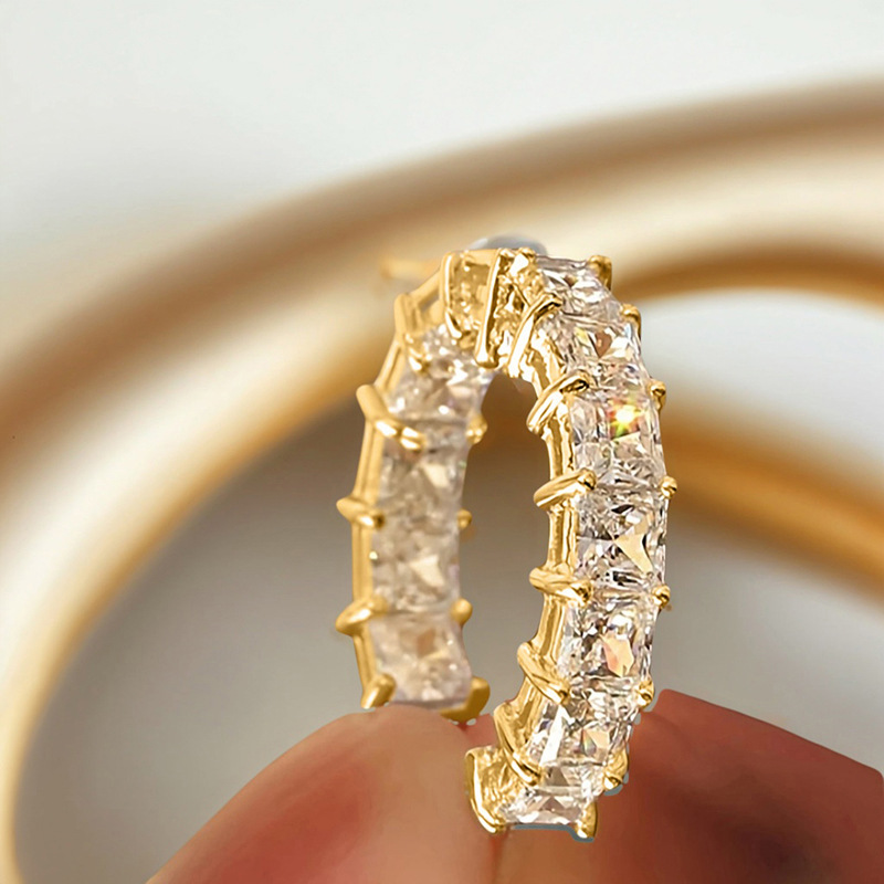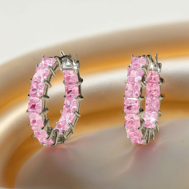 European and American fashion micro-inlaid square super shiny zircon earrings light luxury temperament circle earrings women's versatile earrings
