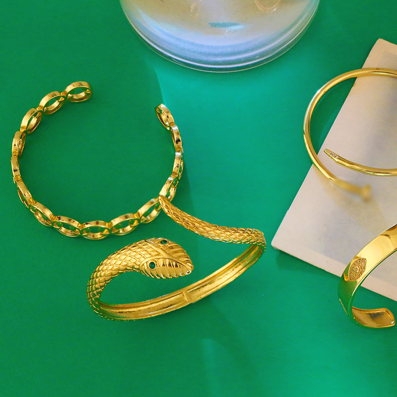 European and American fashion nail bracelet 18k plated zircon bracelet light luxury snake-shaped smiley face expression heavy bracelet brd47