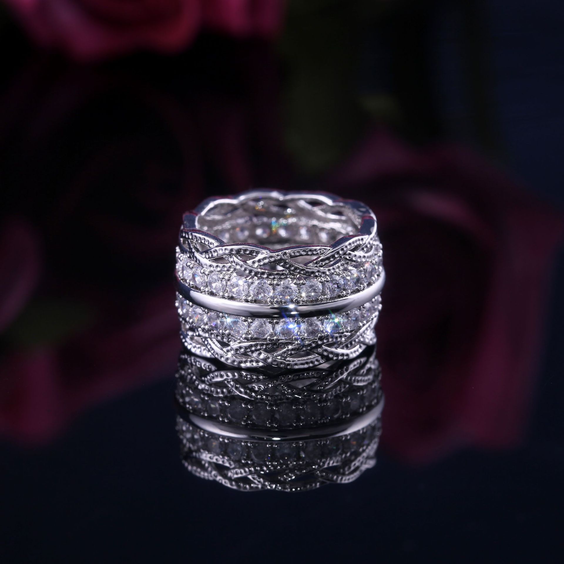Classic four-claw imitation zircon micro-inlaid ring women's double row two-color twist arm ring engagement wedding ring women