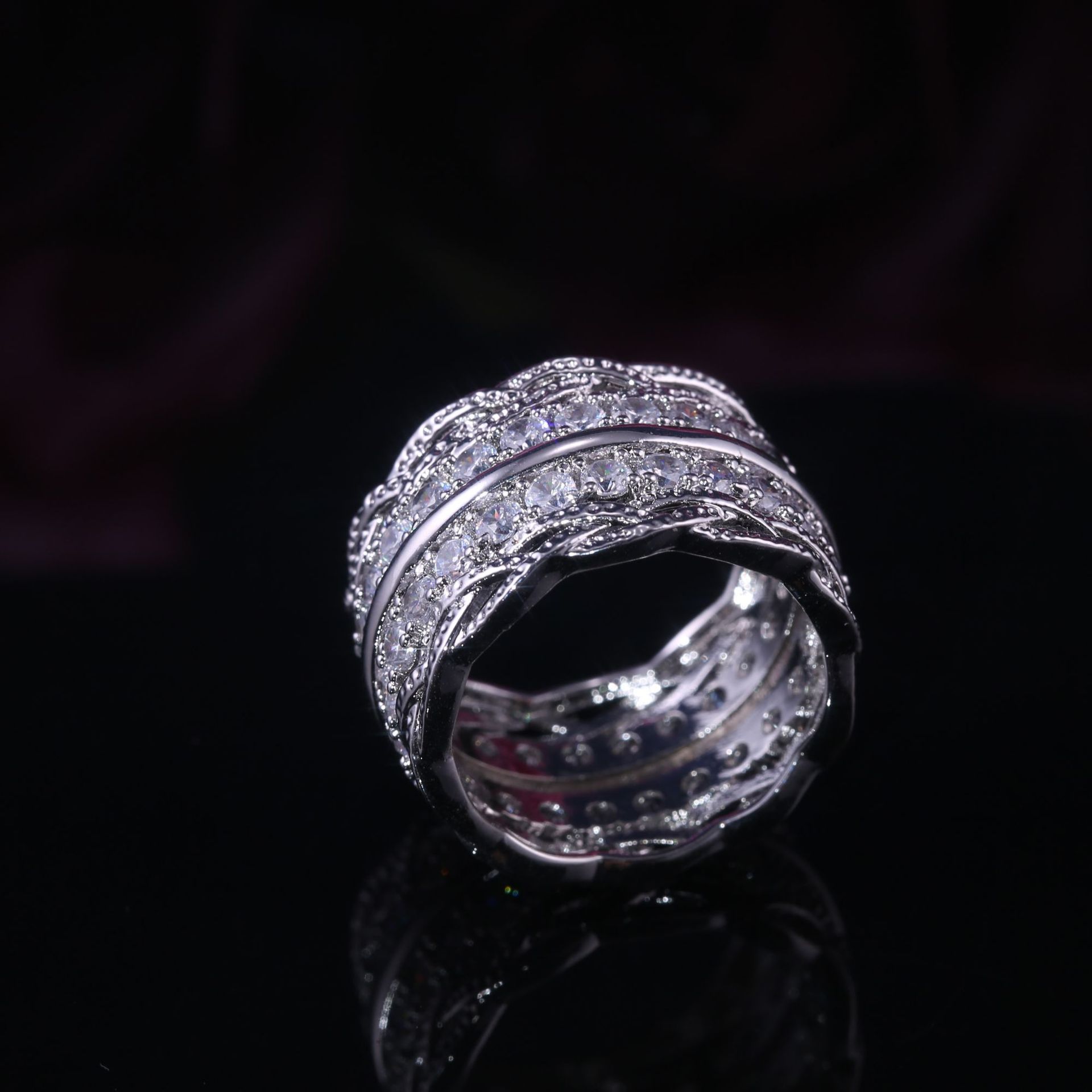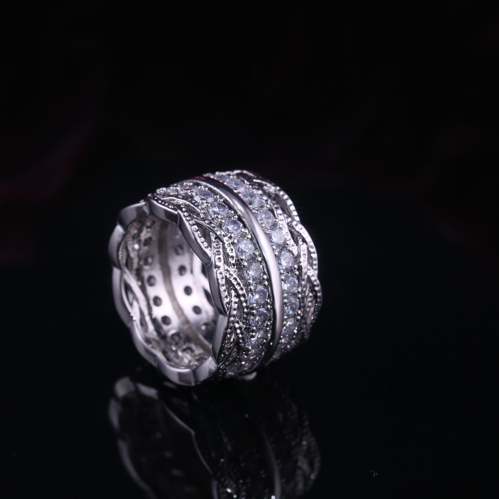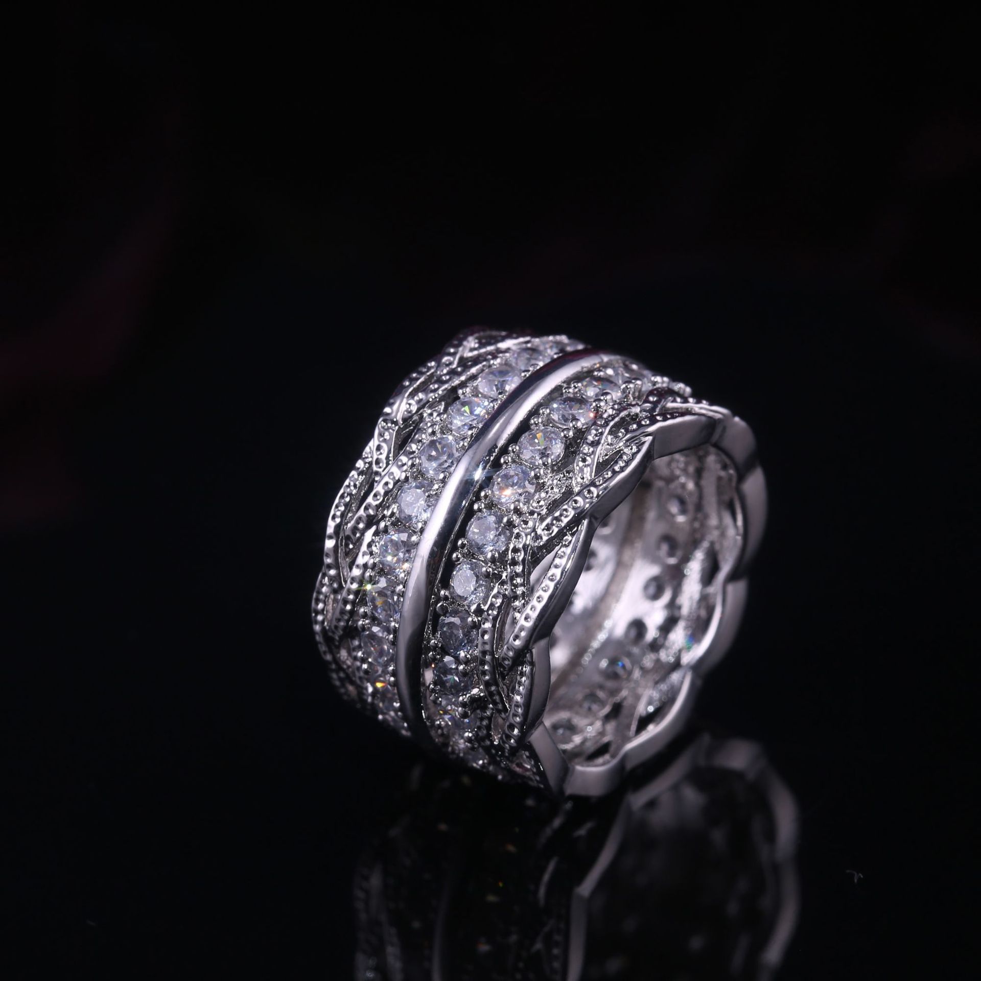 European and American fashion palace retro lace micro-inlaid zircon ring female creative versatile wide version ring wholesale